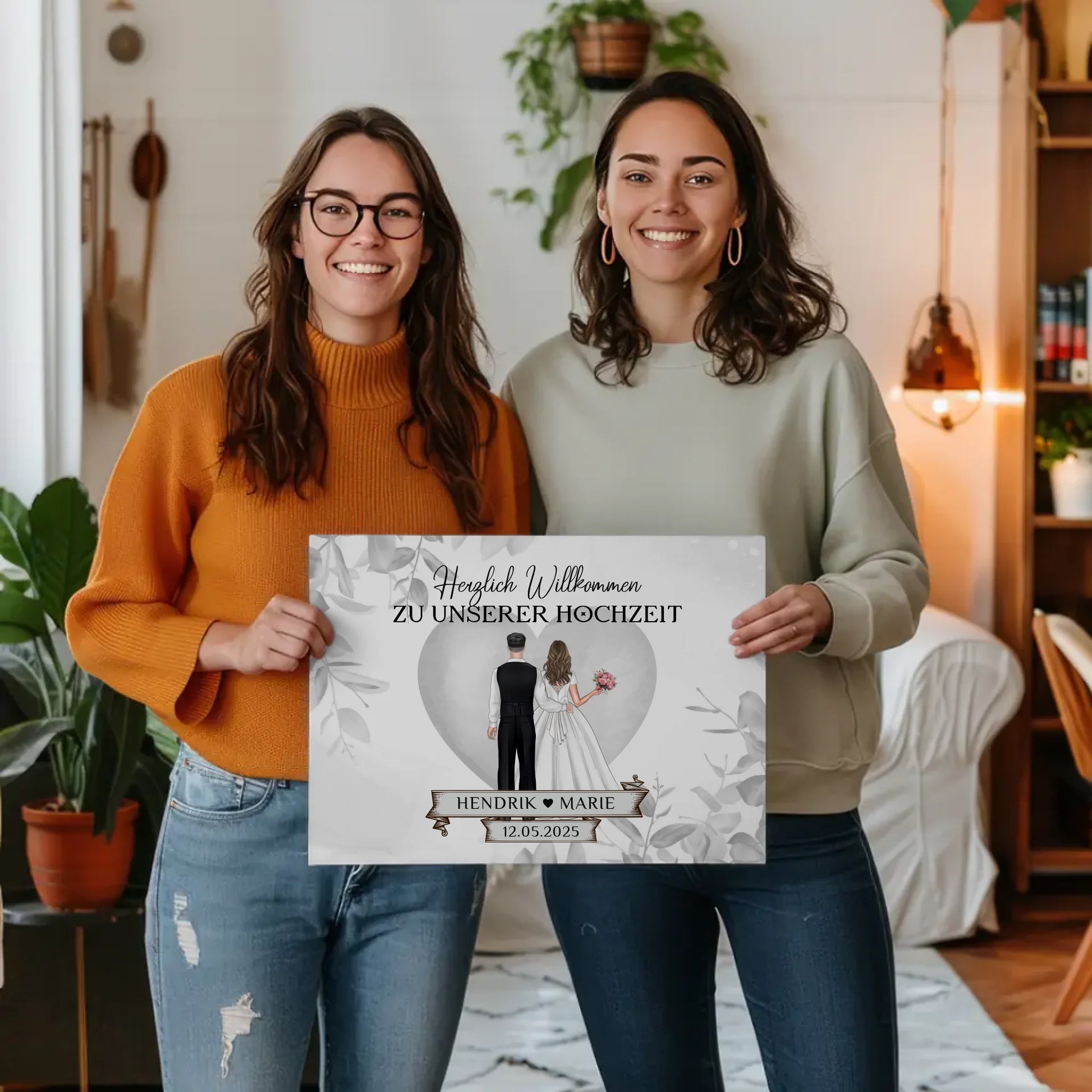 Mache jeden Moment deiner Hochzeitsfeier unvergesslich mit der Leinwand Hochzeit Herzlich Willkommen, die das Gefühl von Wärme und Liebe ausstrahlt. Verleihe deiner Feier mit diesem persönlichen Element eine ganz besondere Note – willkommen zu unserer Hochzeit Schild für das Brautpaar und alle Gäste!