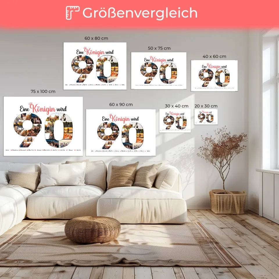 Du möchtest etwas einzigartiges verschenken? Dann ist Unsere Leinwand Königin wird 90 Geburtstag mit Fotos Personalisiert ein tolles personalisiertes Geschenk.