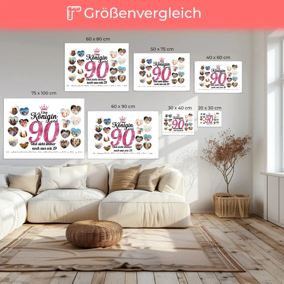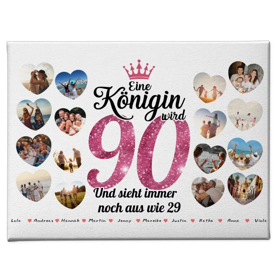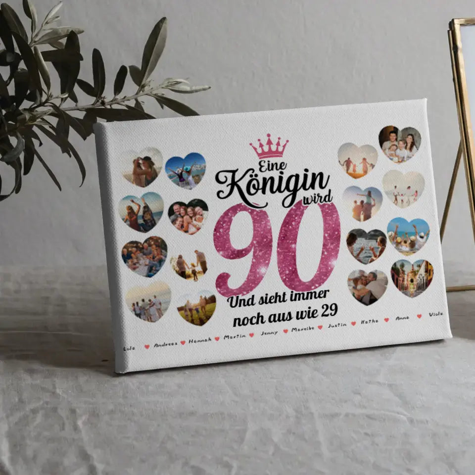 Leinwand Königin wird 90 Geburtstag mit Herz Fotos Personalisiert