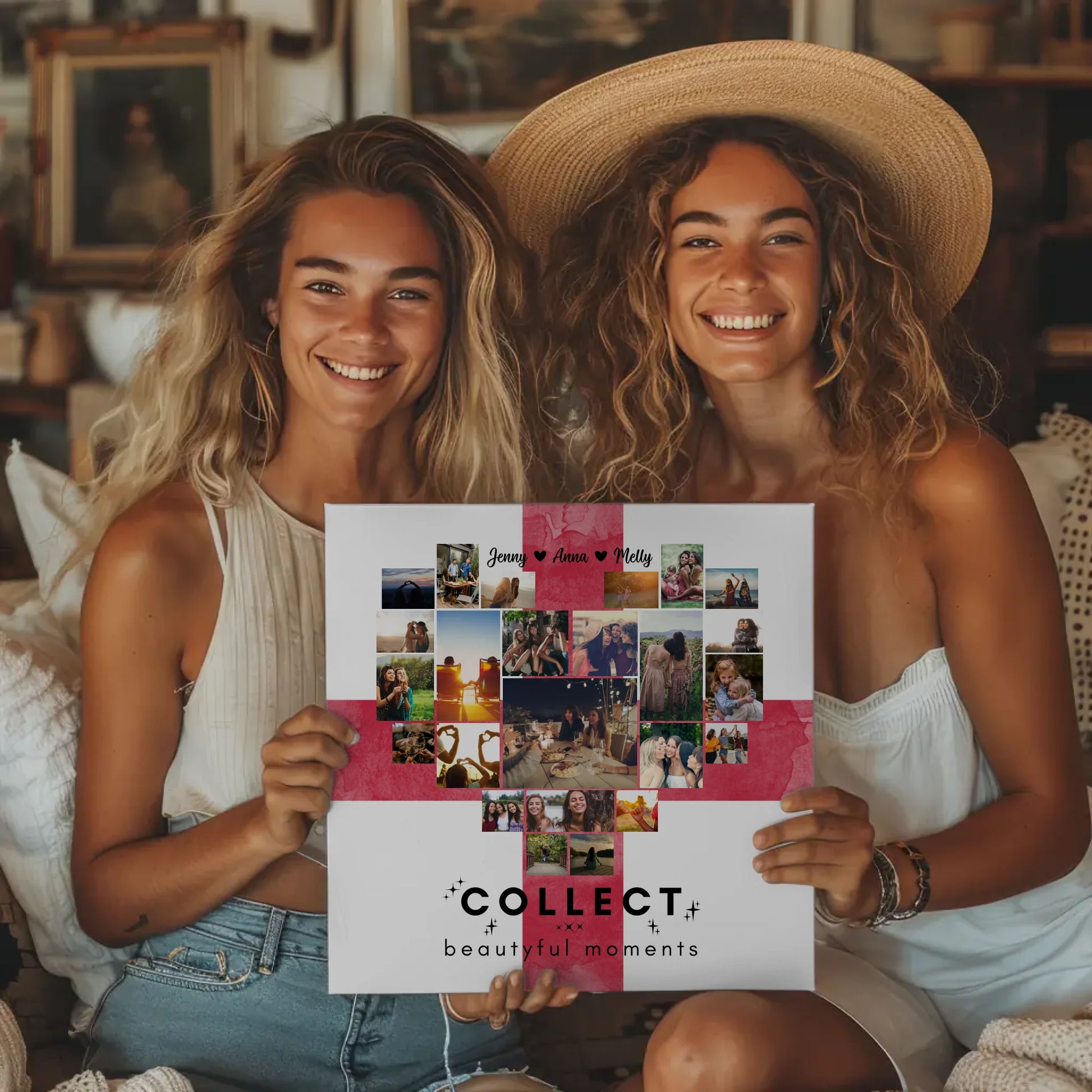 Mit dieser maßgeschneiderten Leinwand mit Fotos schaffst du eine bleibende Erinnerung an unvergessliche Reisen und gemeinsame Erlebnisse. Begeistere deine beste Freundin mit diesem einmaligen und persönlichen Geschenkidee, das garantiert für Freude sorgen wird.