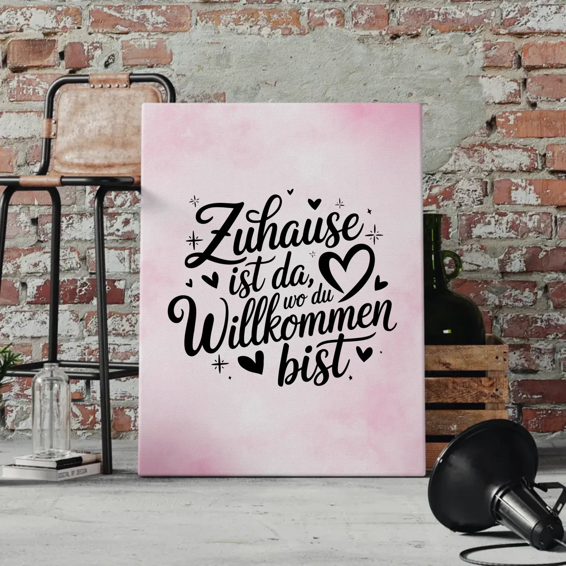 Entdecke die Leinwand mit Spruch: Zuhause ist da, wo du willkommen bist!