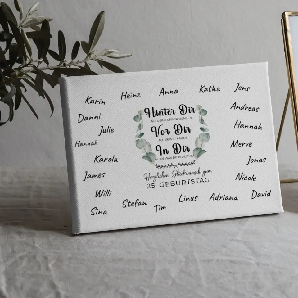 Leinwand personalisiert 25 Geburtstag Hinter Dir mit Unterschriften
