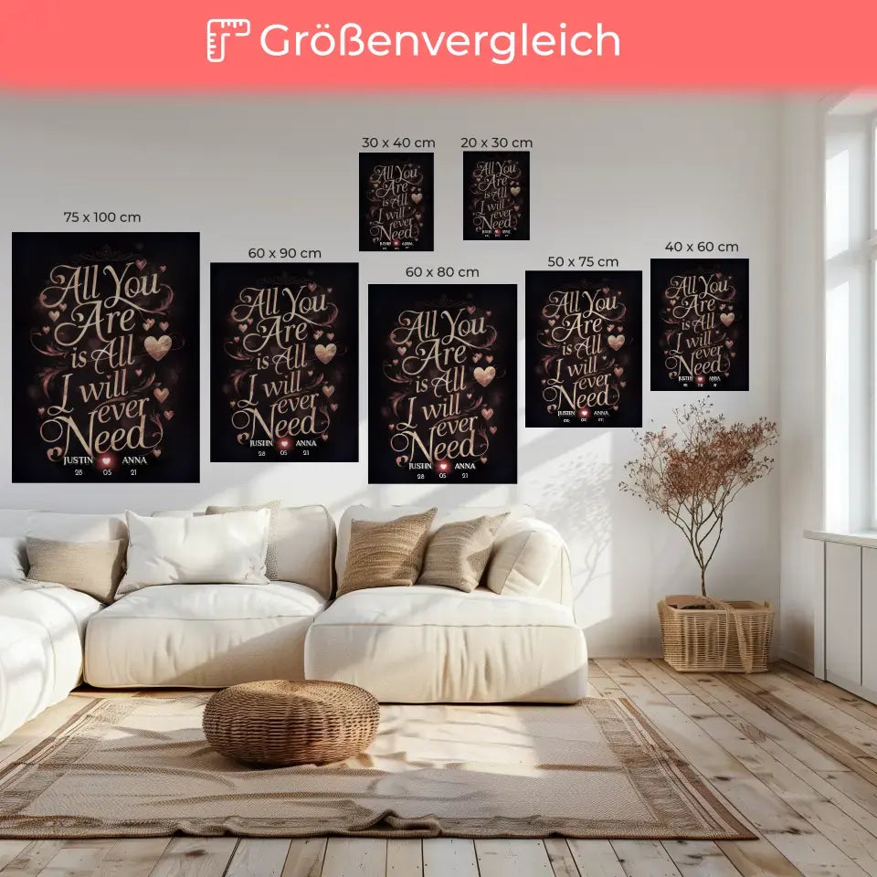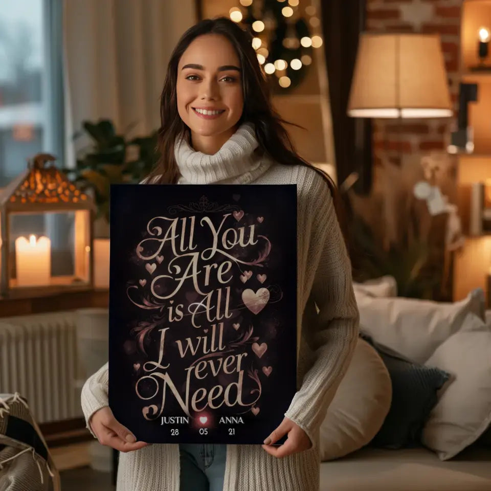 Leinwand personalisiert All You Are Is All I Will Ever Need