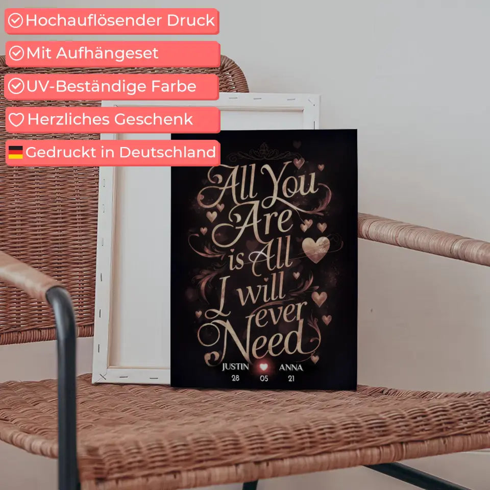 Unsere Leinwand personalisiert All You Are Is All I Will Ever Need