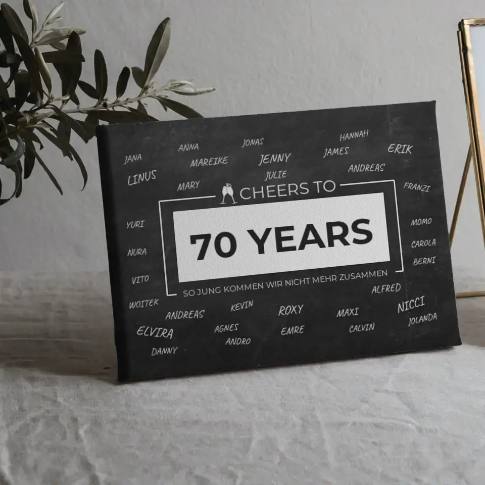 Leinwand personalisiert Cheers To 70 Geburtstag Mit Unterschriften