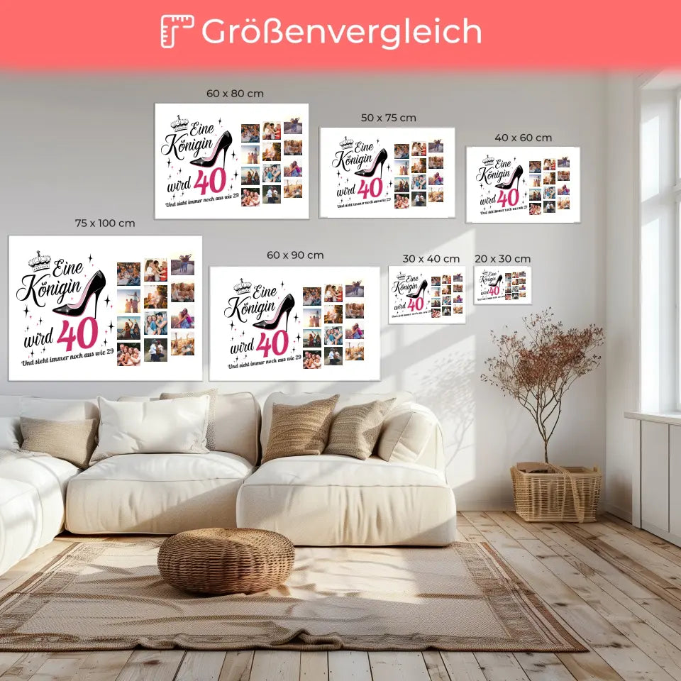 Du würdest gerne etwas einzigartiges schenken? Dann ist Unsere Leinwand personalisiert Eine Königin wird 40 Geburtstag mit 12 Fotos ein richtig schönes personalisiertes Geschenk.