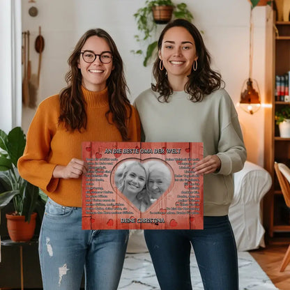 Leinwand personalisiert Oma Holz Stil Herzen Rotes Holz Stil
