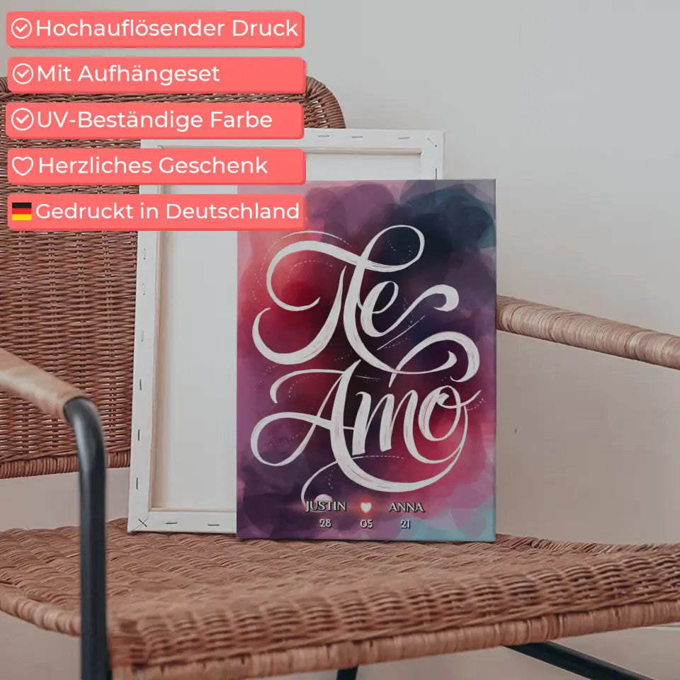 Leinwand personalisiert Te Amo Liebesbild Geschenk für Sie