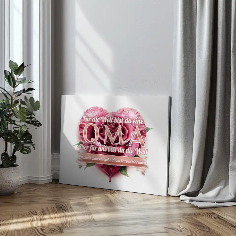 Unsere Leinwand Rosenherz für Oma Du bist unsere Welt