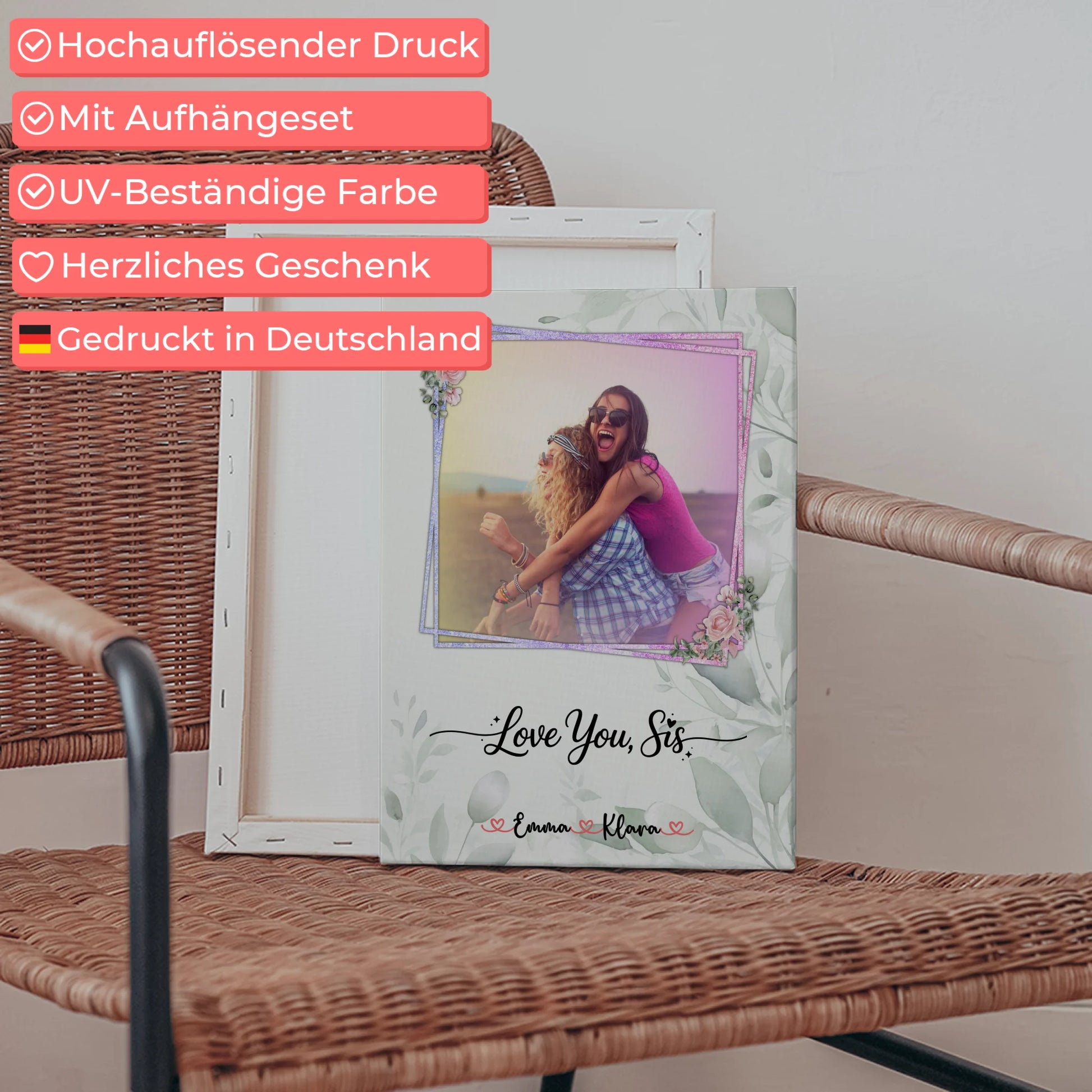 Leinwand Schwester Love you sis 1 Foto & Namen mit Wunschtext