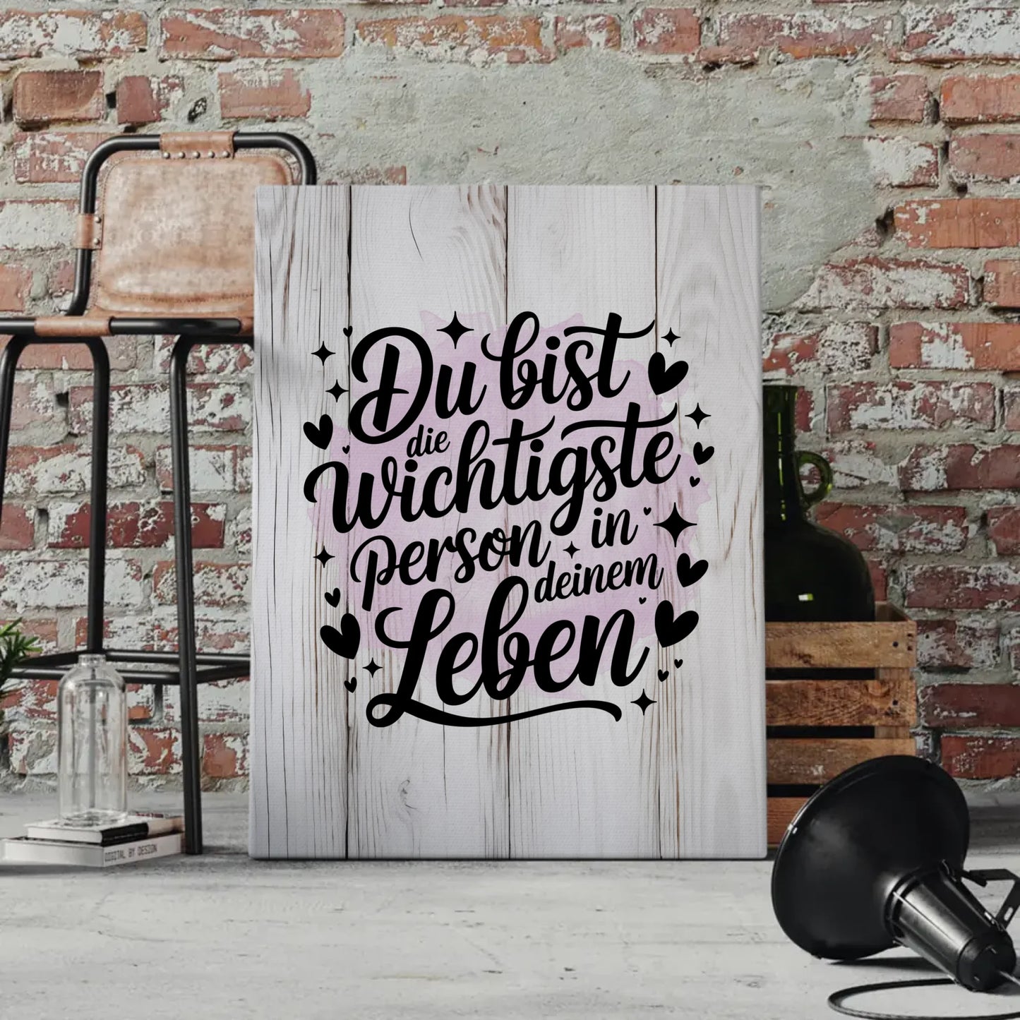 Bereit für dein persönliches Kunstwerk? Wähle jetzt aus einer Vielzahl von Designs und hinterlasse dein persönliches Statement auf unserer Leinwand Spruch 'Du bist die wichtigste Person in deinem Leben'.