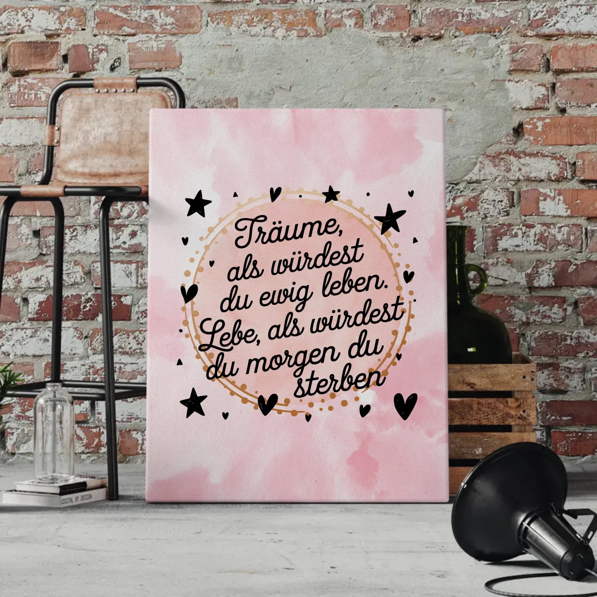 Leinwand Spruch: Träume ewig leben, lebe morgen sterben
