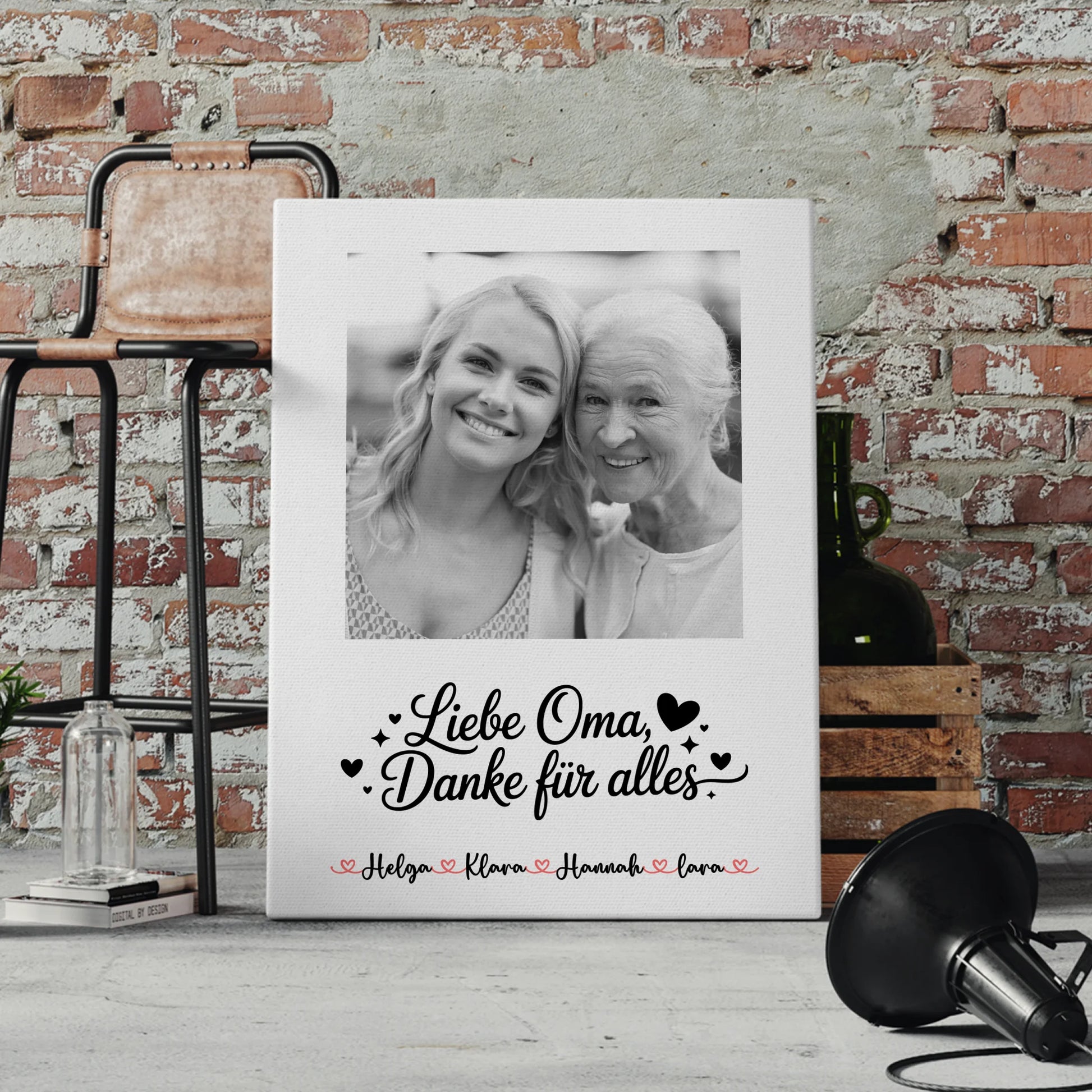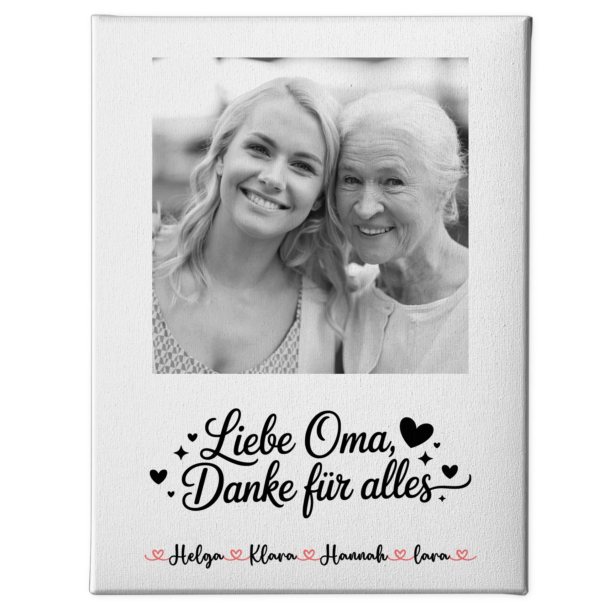 Leinwand Wandbild Oma mit 1 Foto, Namen & eigenem Spruch Black & White