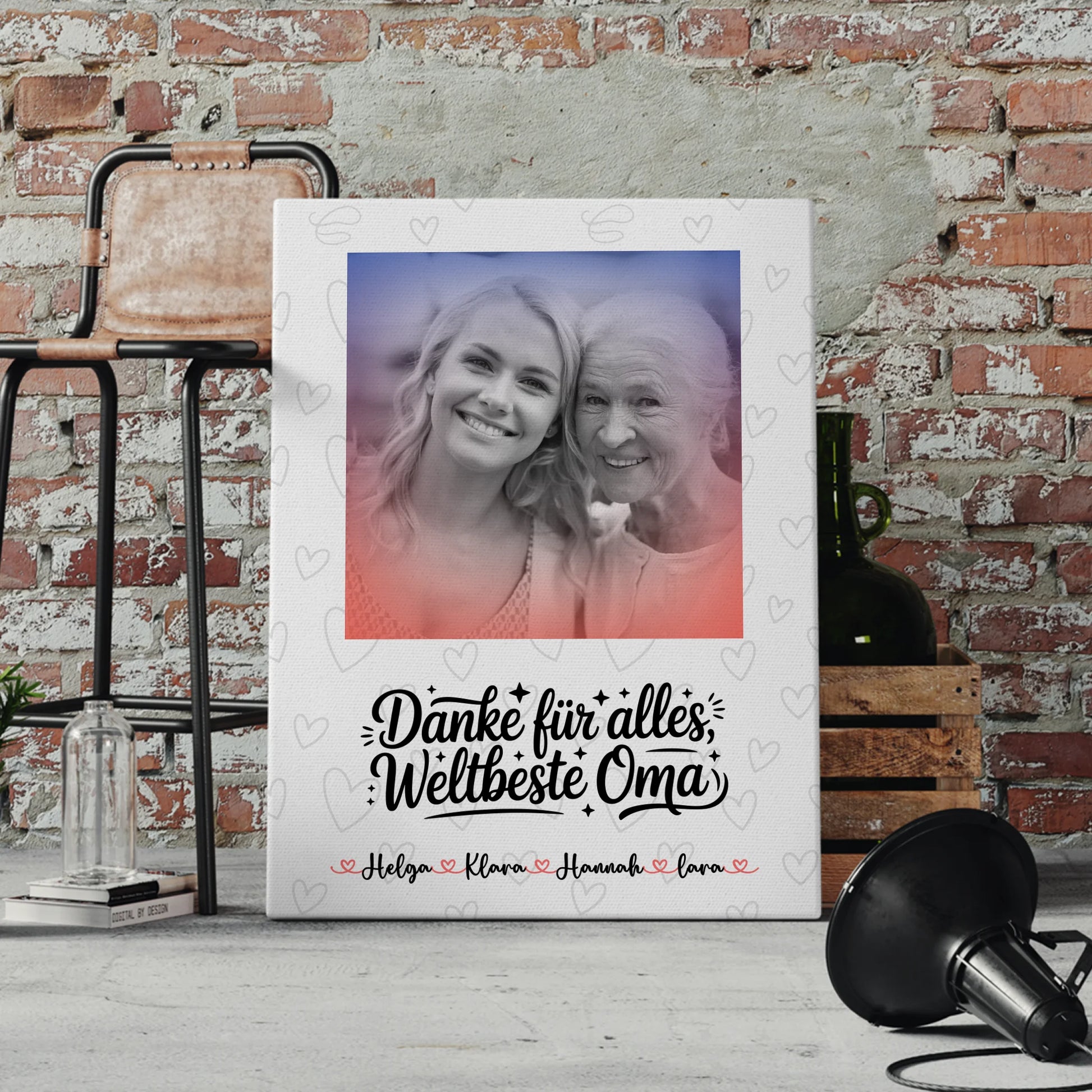 Ideal als Geschenkidee für Oma zum Muttertag: Persönlich, emotional und nachhaltig. Gestalte jetzt dein individuelles Wandbild und schaffe ein Erinnerungsstück, das lange Freude bereitet.