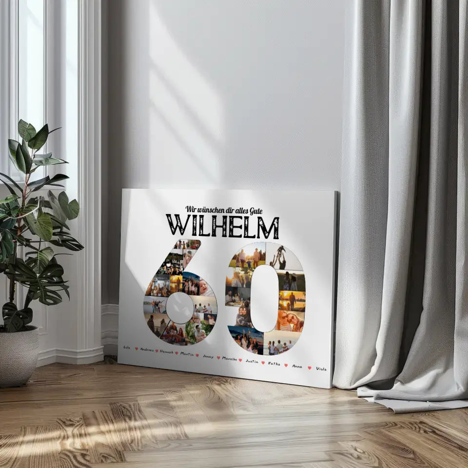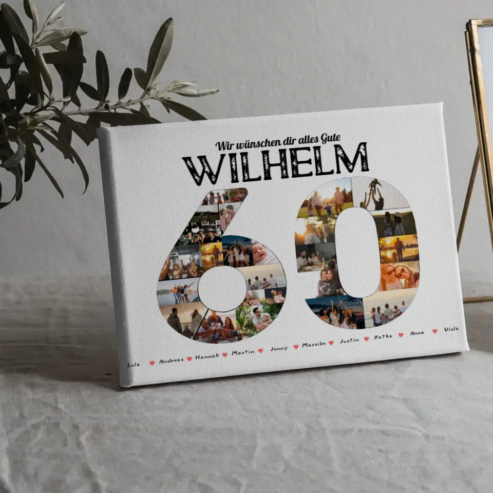Leinwand zum 60 Geburstag mit Name & Fotos in Zahlen