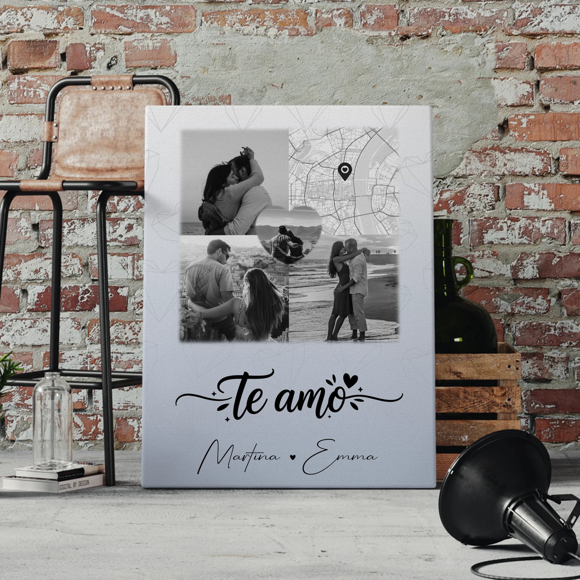Dein persönliches Leinwandbild Paar mit 3 Fotos und Herz Foto Karte Te amo Liebe auf Spanisch – Das perfekte Geschenk für Paare