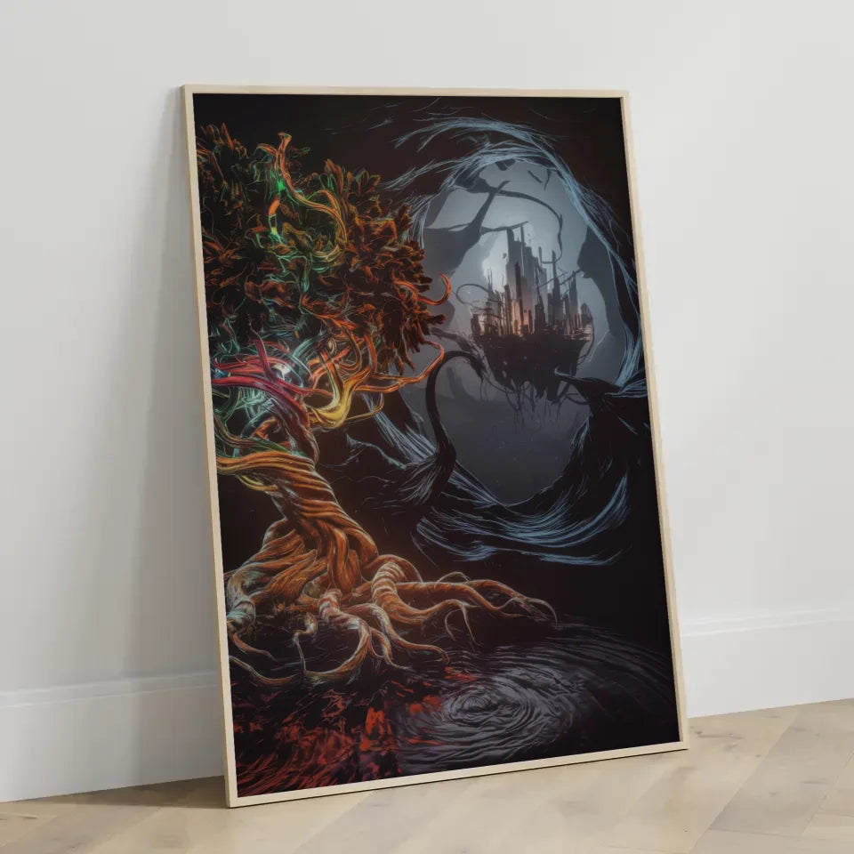 Verleihen Sie Ihrem Raum mit dem Leuchtender Baum Poster für dunkle Fantasy Welt eine außergewöhnliche Note und genießen Sie die tiefen, kunstvollen Details, die Sie in Ihre eigene faszinierende Fantasiewelt eintauchen lassen.