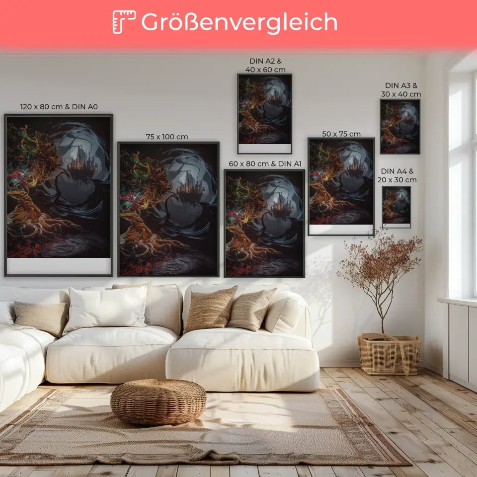 Das Leuchtender Baum Poster ist nicht nur ein Blickfang, sondern auch ein perfektes Element zur Gestaltung Ihres Wohnraums, sei es im Wohnzimmer, Schlafzimmer oder im kreativen Arbeitsbereich. Mit seinen lebendigen Farben und der einzigartigen Darstellung der Abwesenheit im abstrakten Design bringt dieses Poster eine besondere Atmosphäre in jedes Zuhause.