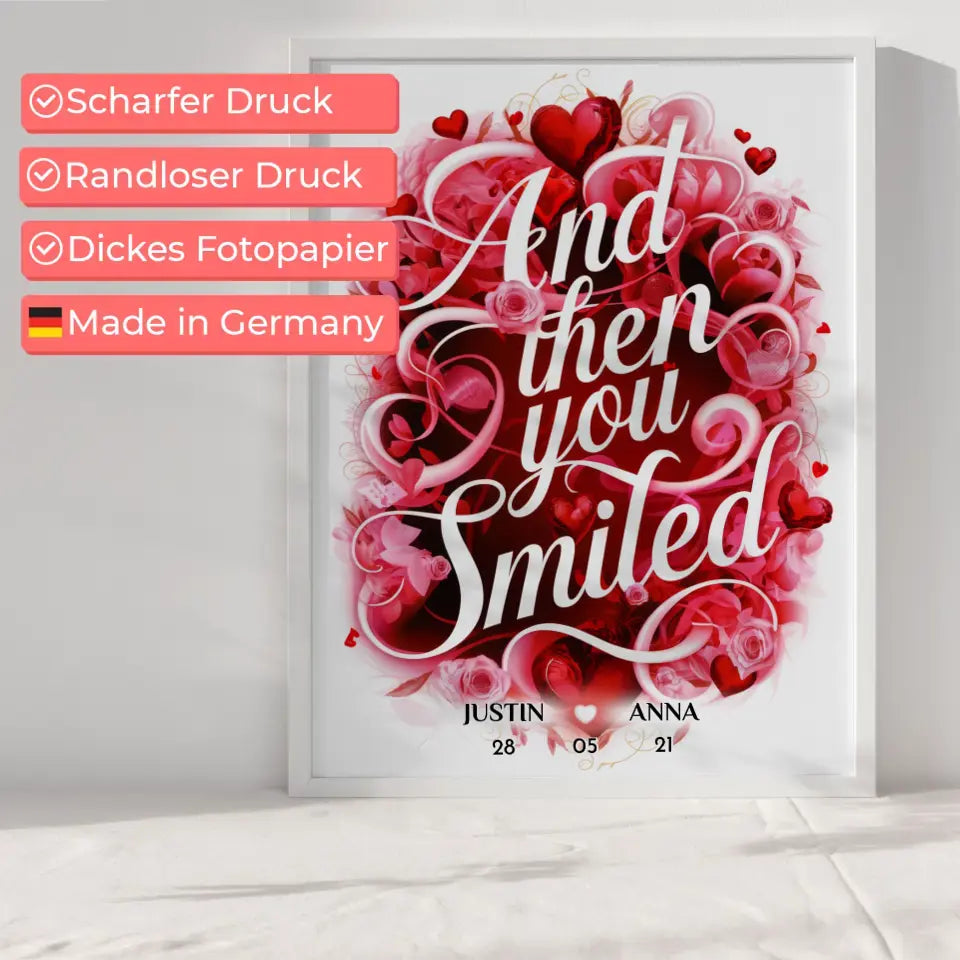 Liebes Poster And Then You Smiled Geschenk Personalisiert