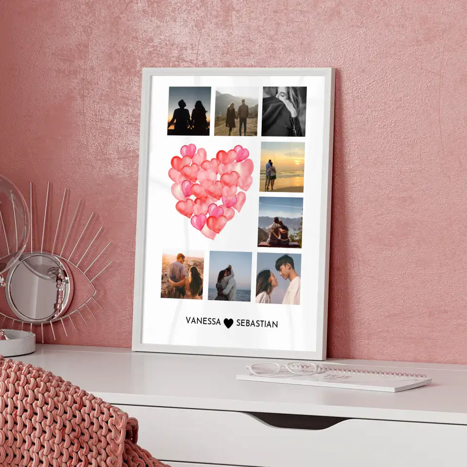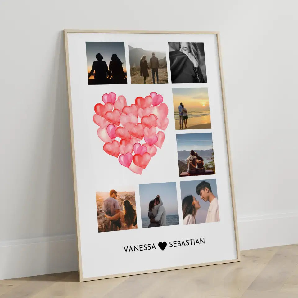 Du magst einzigartige Geschenke? Dann ist unser Liebes Poster Ballon Herzen Mit Fotos & Namen das perfekte personalisierbare Geschenk.
