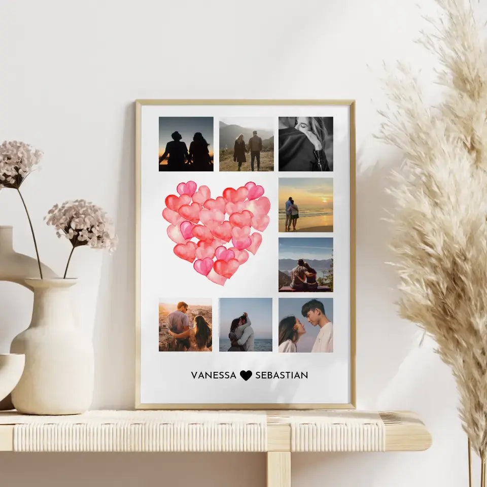 Liebes Poster Ballon Herzen Mit Fotos & Namen