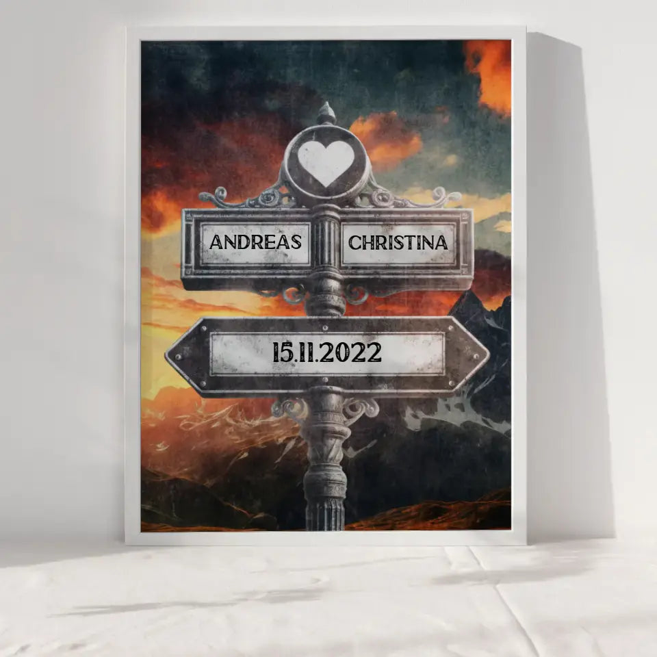 Du bist auf der Suche nach einem schönen tollen Geschenk? Dann ist unser Liebes Poster Herz Wegweiser Berg Panorama Vintage für Paare das perfekte personalisierbare Geschenk.