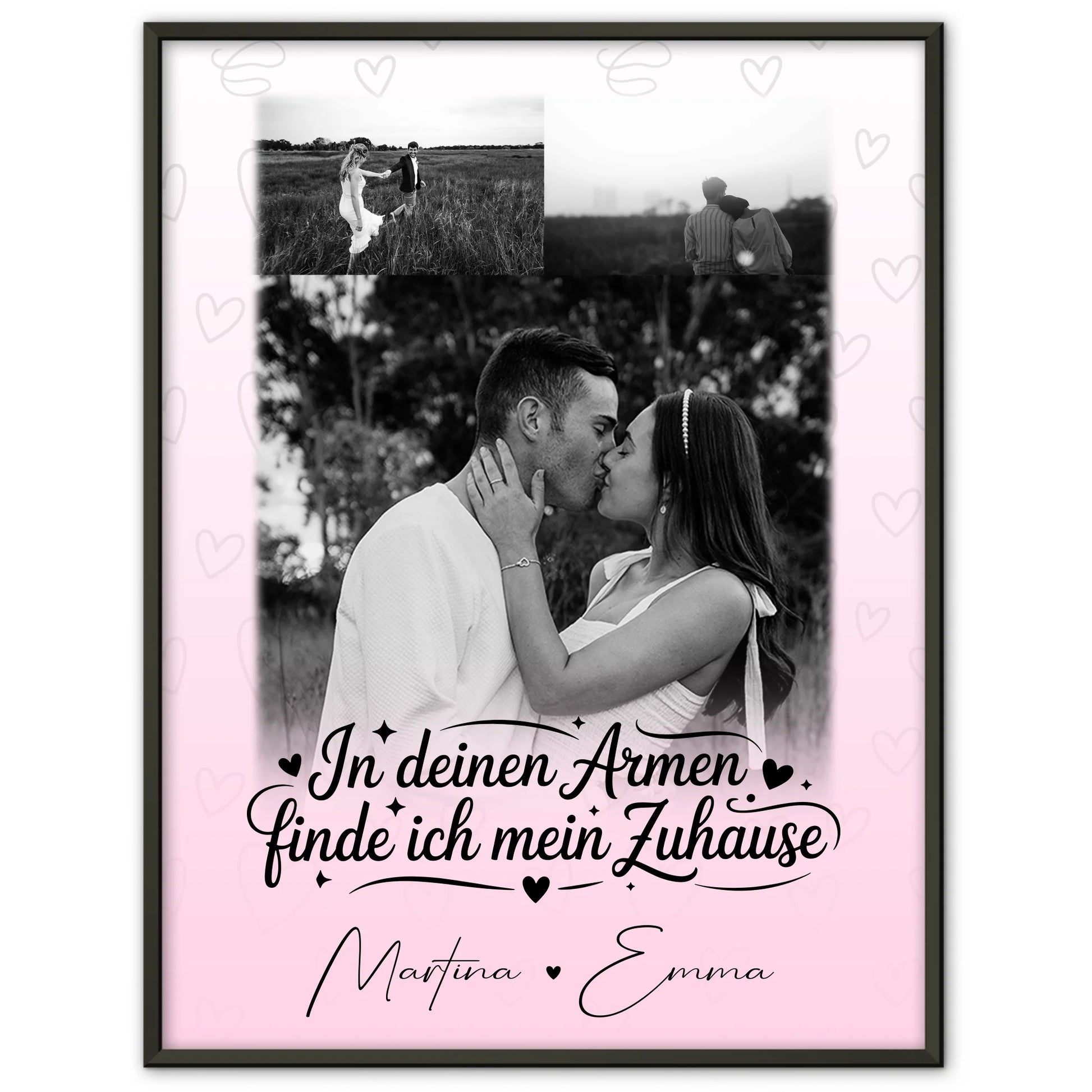 Liebes Poster In deinen Armen personalisierbar mit 3 Fotos als Geschenk für Paare
