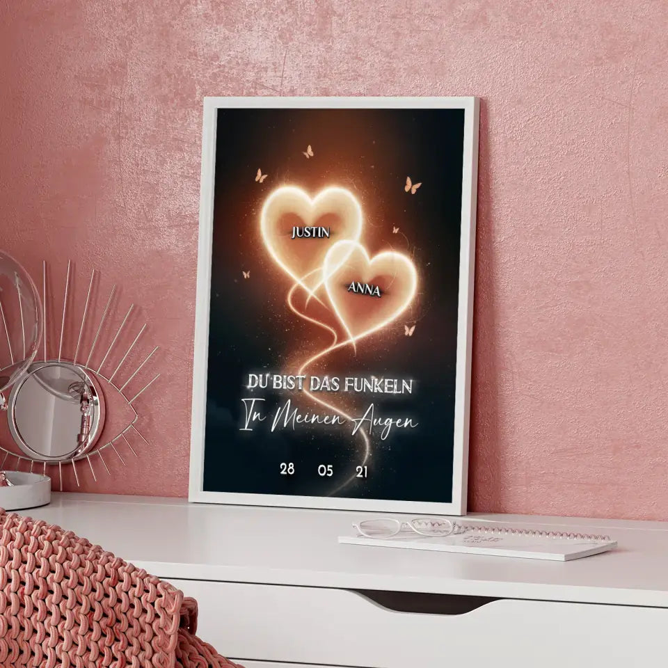 Liebes Poster Leuchtherz Mit Namen & Datum Personalisiert