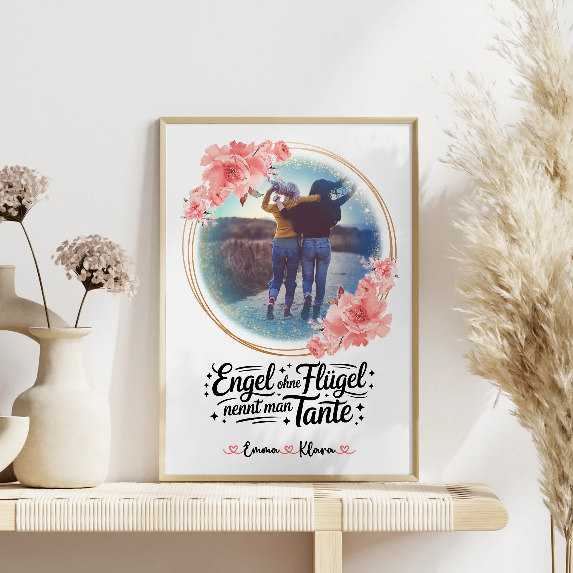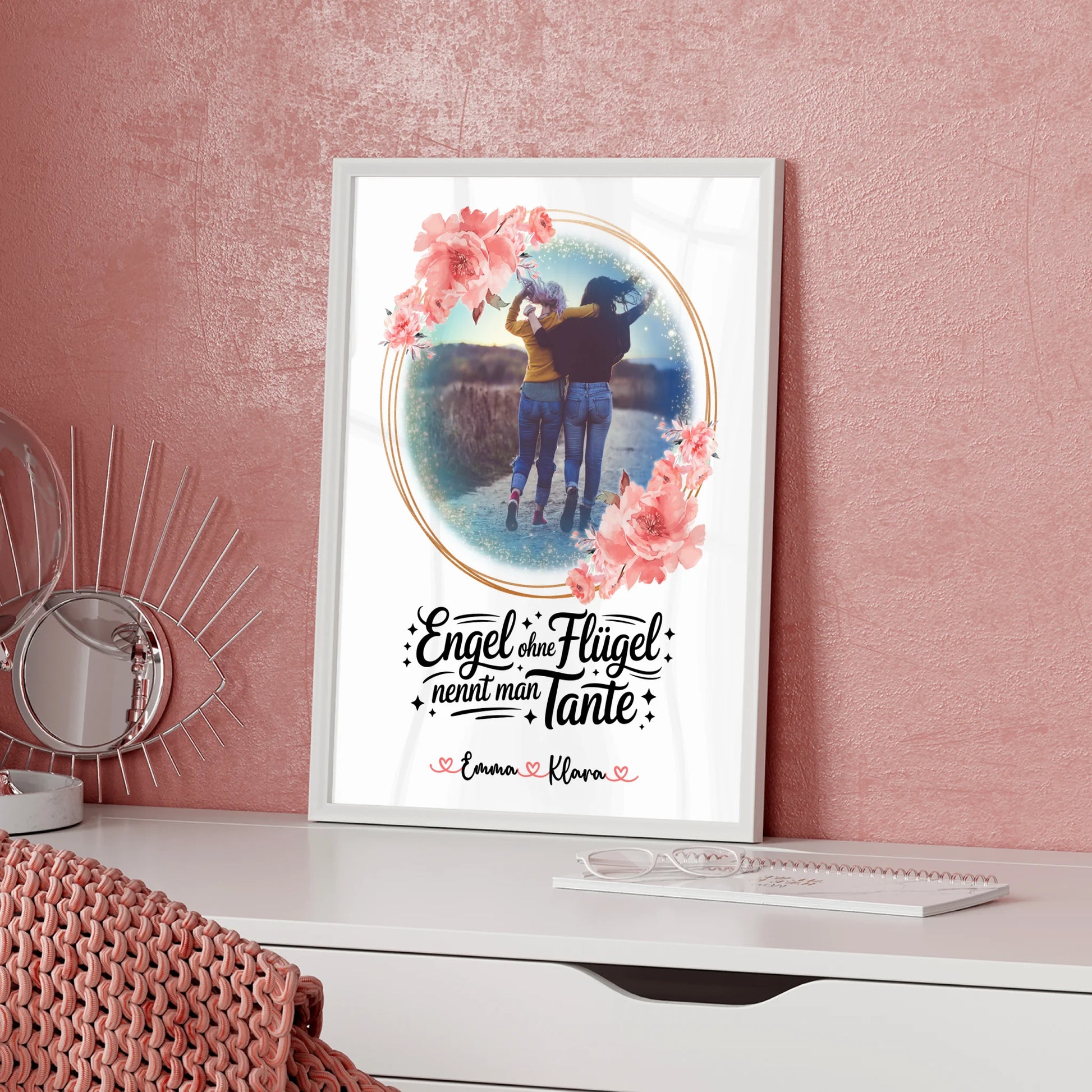 Überrasche deine Tante mit einem persönlichen Poster, das Emotionen weckt und besondere Momente bewahrt. Dieses personalisierte Poster kombiniert dein Lieblingsfoto mit Namen und einem Wunschtext und trägt den liebevollen Spruch Engel ohne Flügel nennt man Bruder oder alternativ deinen eigenen Text - ideal für jeden Anlass.