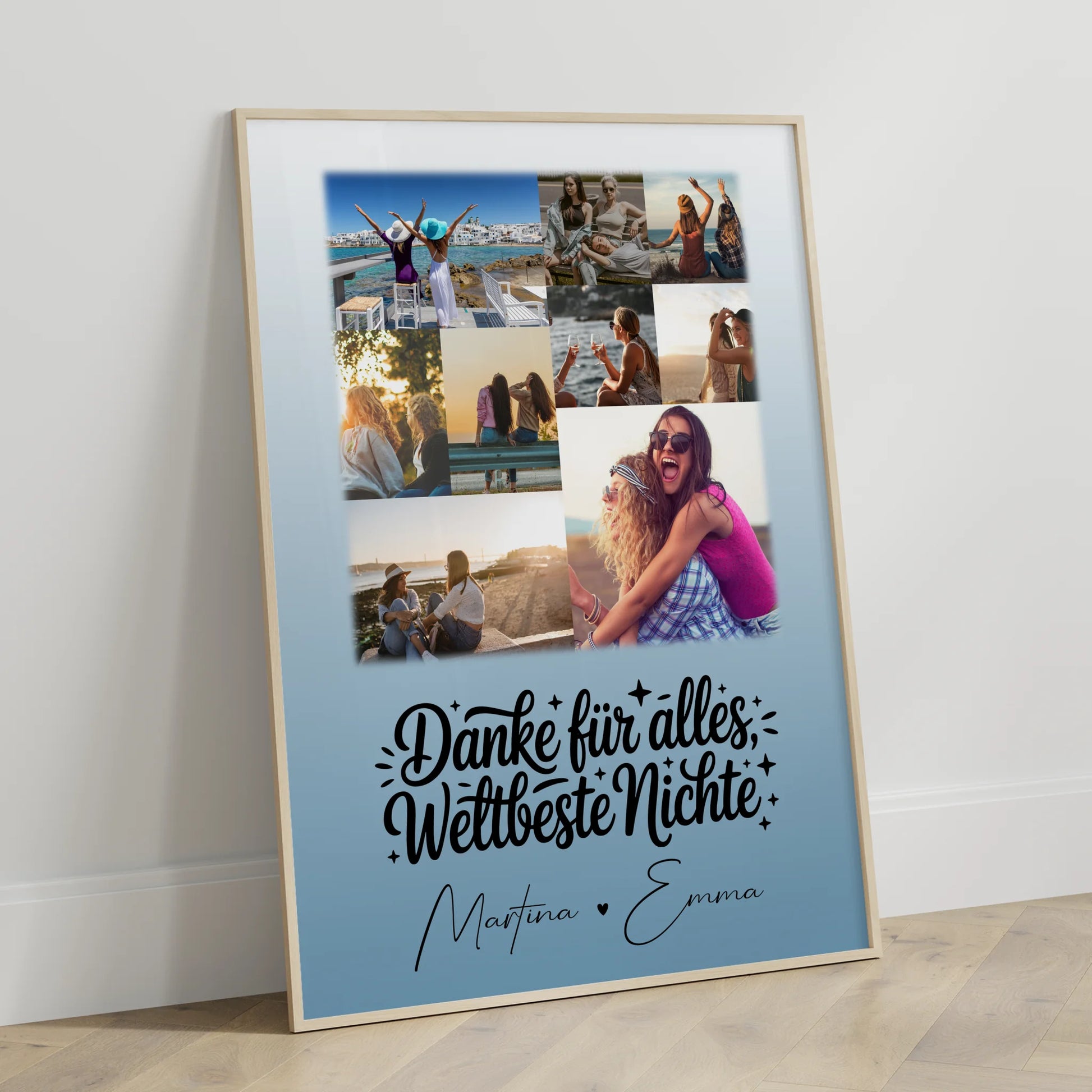 Liebes Poster Personalisiert mit 9 Fotos Beste Nichte Danke Für Alles