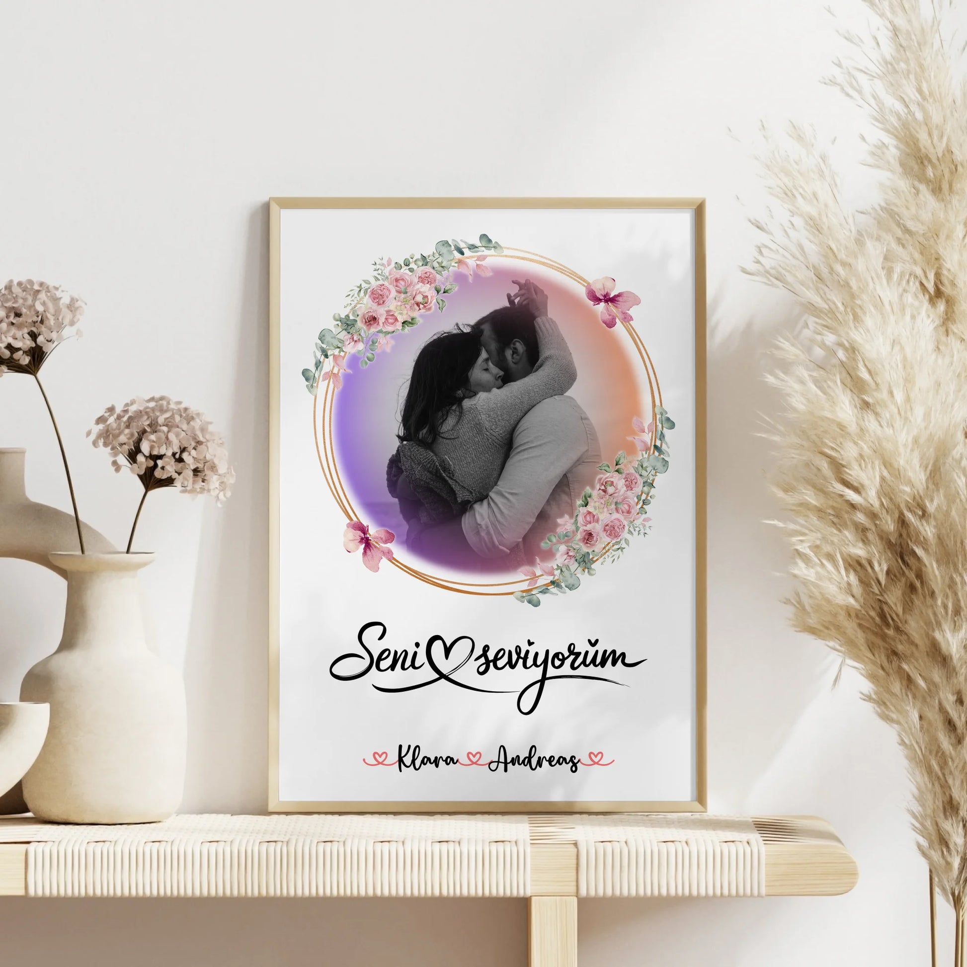 Das klare Layout mit dem schönen Spruch Seni Seviyorum setzt deine gemeinsame Erinnerung stilvoll in Szene. Ob klassisch schwarzweiß oder mit farbigem Foto und zartem Aquarellhintergrund, du gestaltest ein individuelles Liebesposter, das als Geschenk für Paare am Valentinstag besonders emotional wirkt. Personalisierte Geschenke, Poster mit Foto und Liebesposter sind ideale Schlüsselwörter für dieses Produkt. Gestalte dein Poster gleich online, personalisiere Namen und Wunschtext und sichere dir ein Erinnerungsstück, das Herzen berührt.