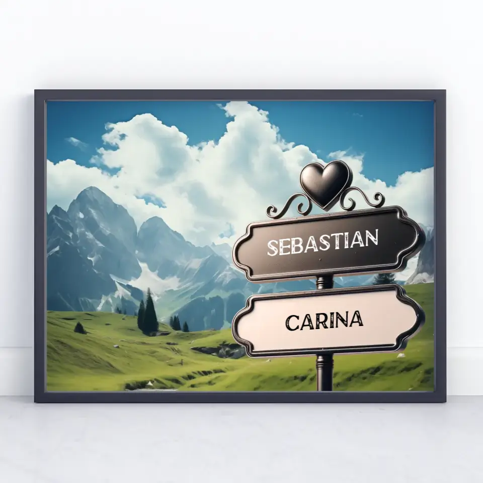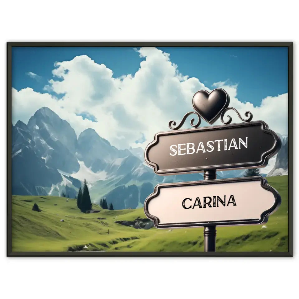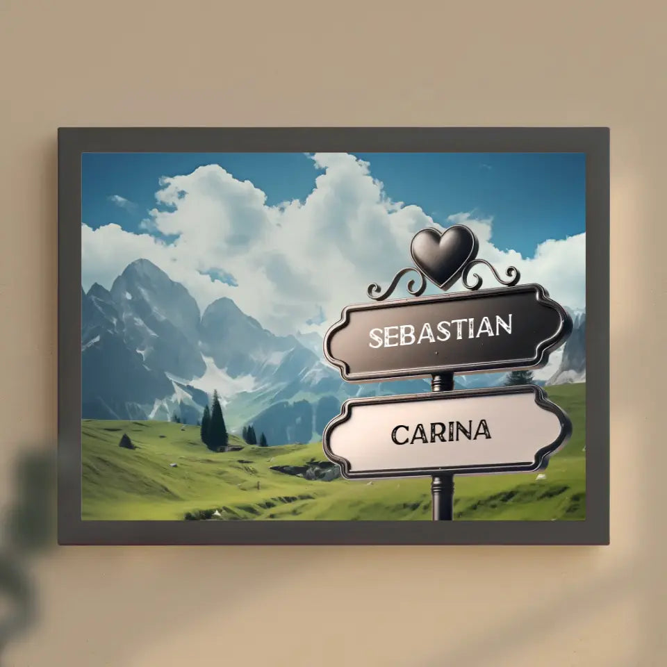 Liebes Poster Wegweiser Alpen Weide mit Namen
