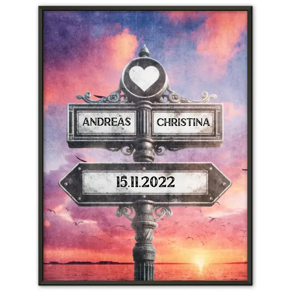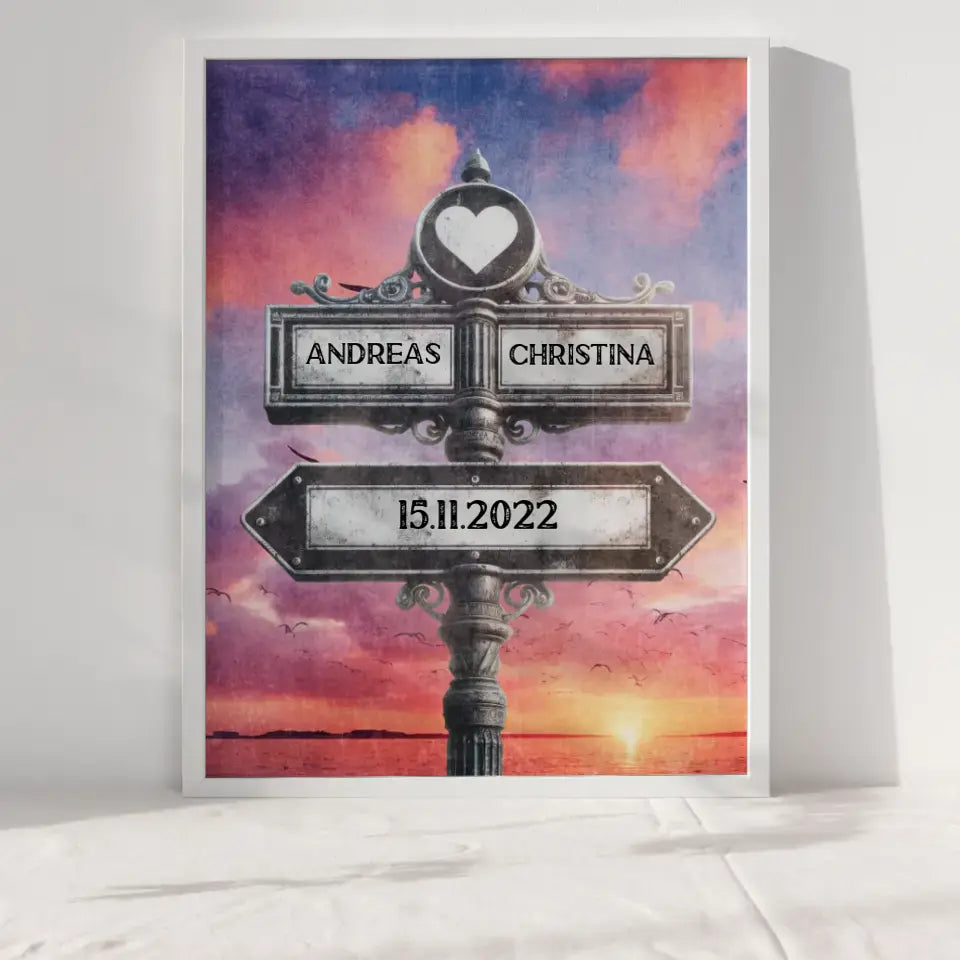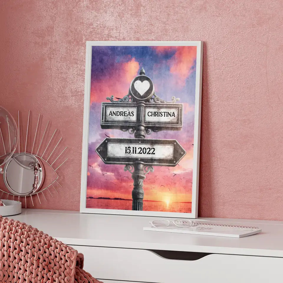 Unser Liebes Poster Wegweiser Lila Wolken Vintage für Paare