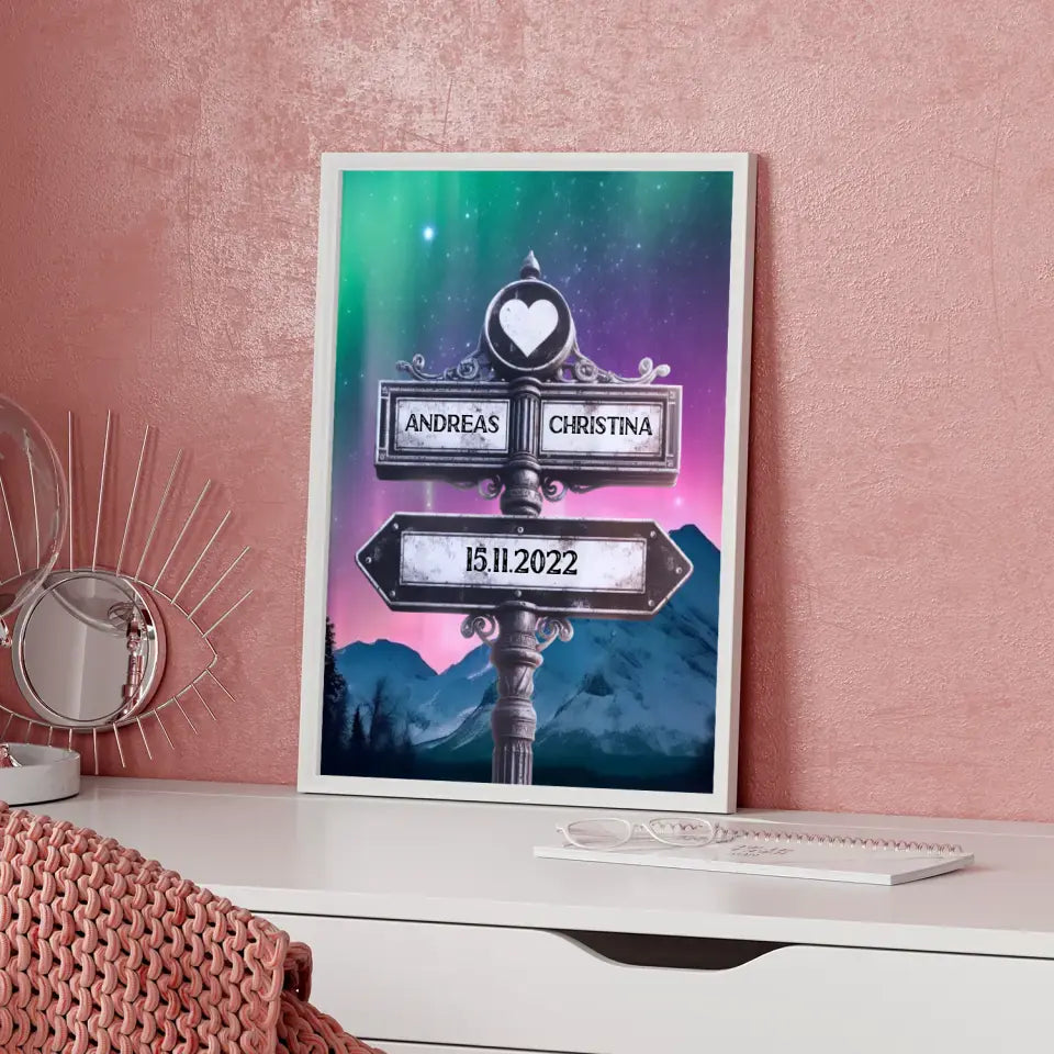 Unser Liebes Poster Wegweiser Polarlichter mit Namen & Datum