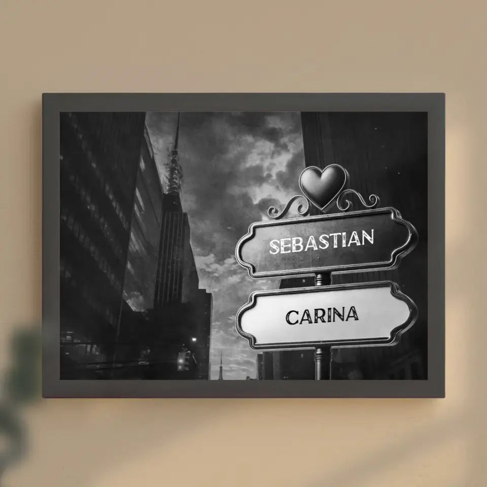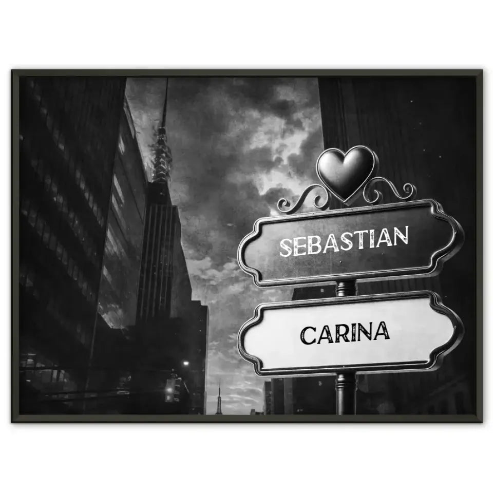 Liebes Poster Wegweiser Schwarz Weiß bewölkte Stadt mit Namen