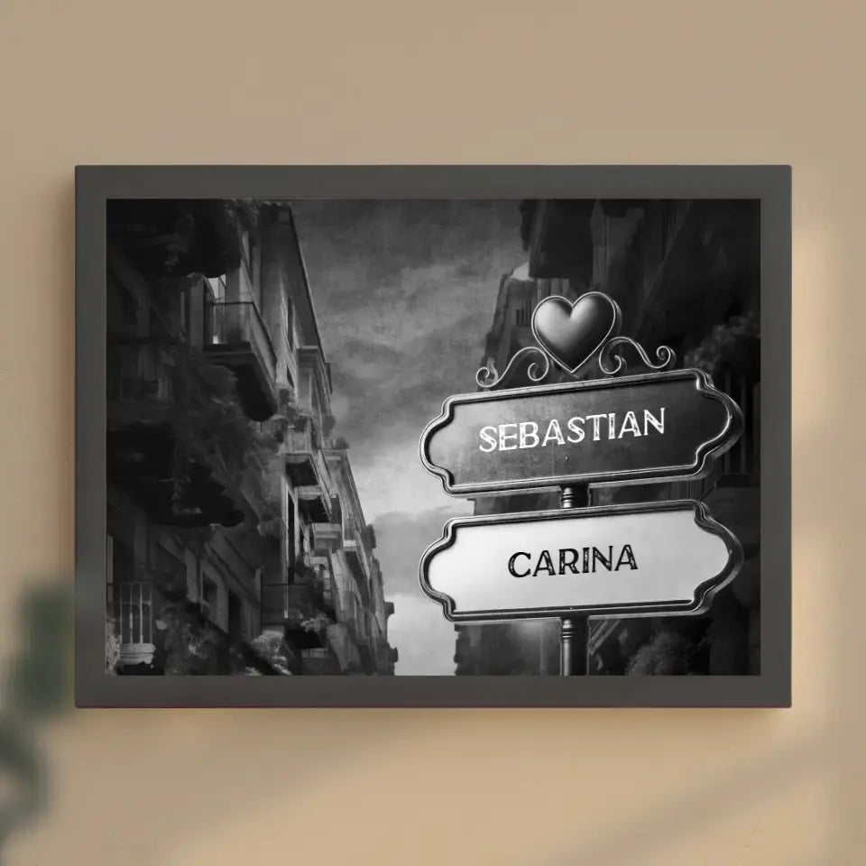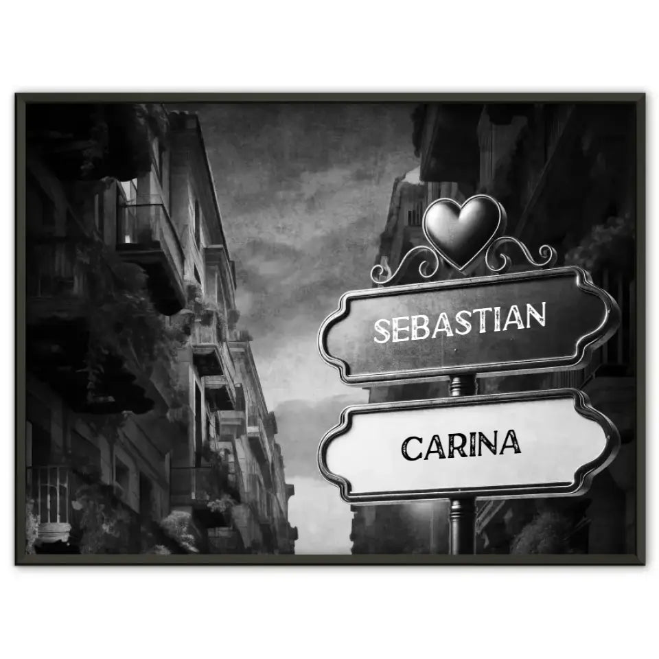Liebes Poster Wegweiser Schwarz Weiß Stadt Himmel mit Namen
