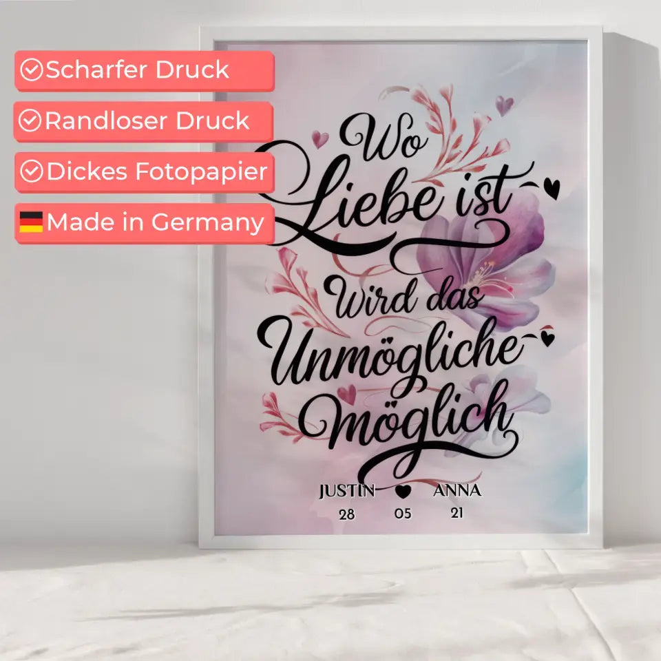 Liebes Poster Wo Liebe Ist Wird Das Unmögliche Möglich Personalisiert