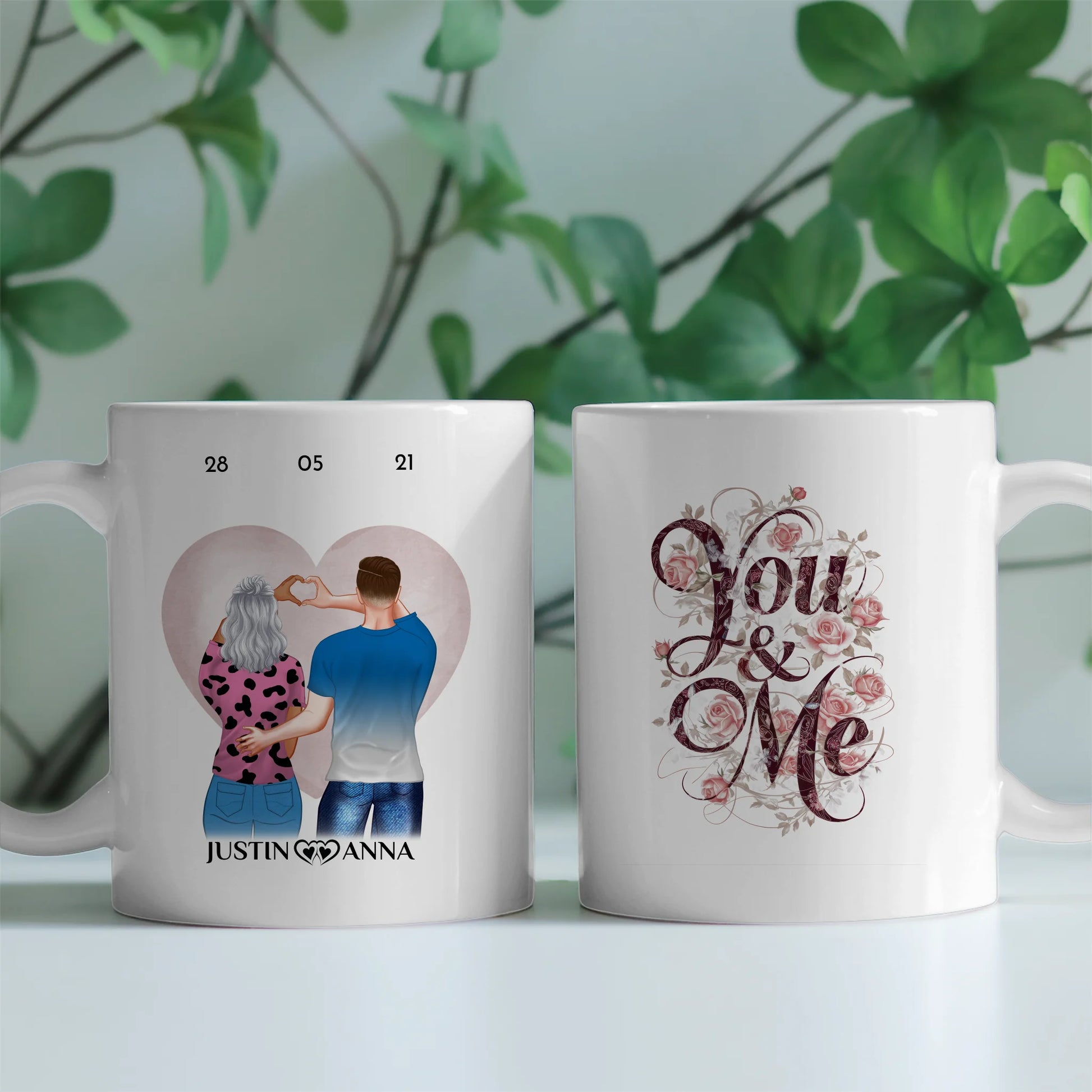 Du möchtest mal wieder etwas einzigartiges verschenken? Unsere Liebes Tasse für Paare You and Me Paar als Cliparts ein schönes und einzigartiges personalisiertes Geschenk.
