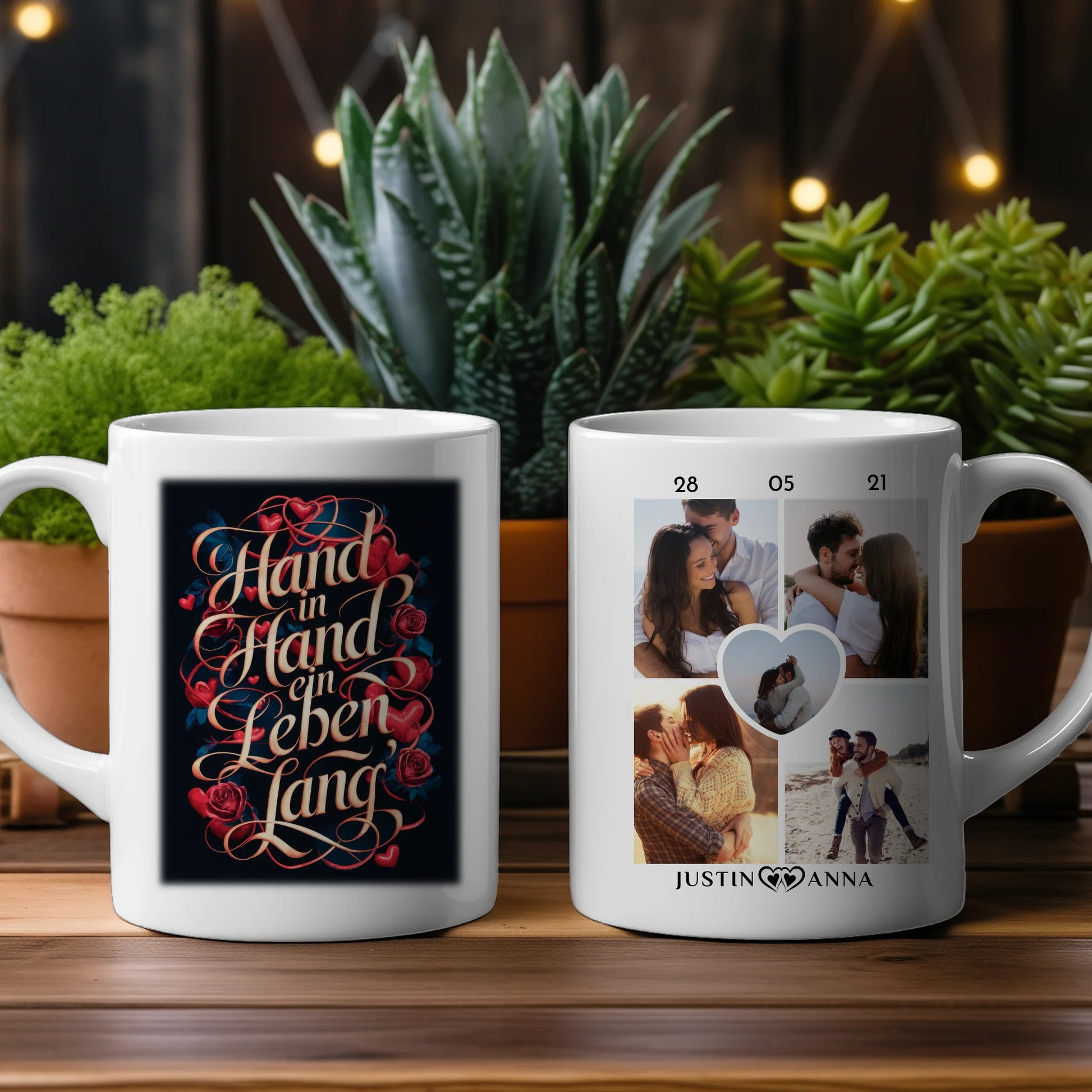 Unsere Liebes Tasse für Pärchen mit 5 Fotos Hand In Hand Herzen & Rosen