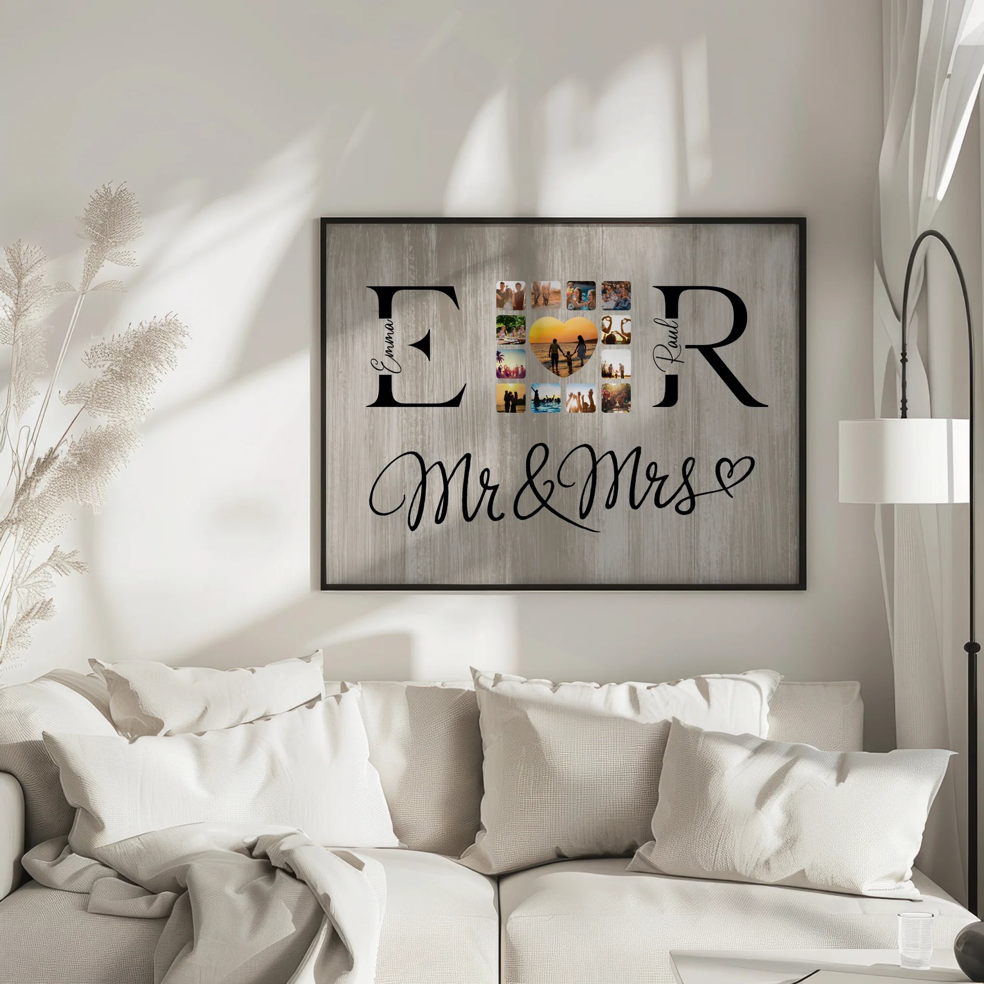 Liebesposter für Paare Mit Fotos Initialien und Fotos Mr & Mrs