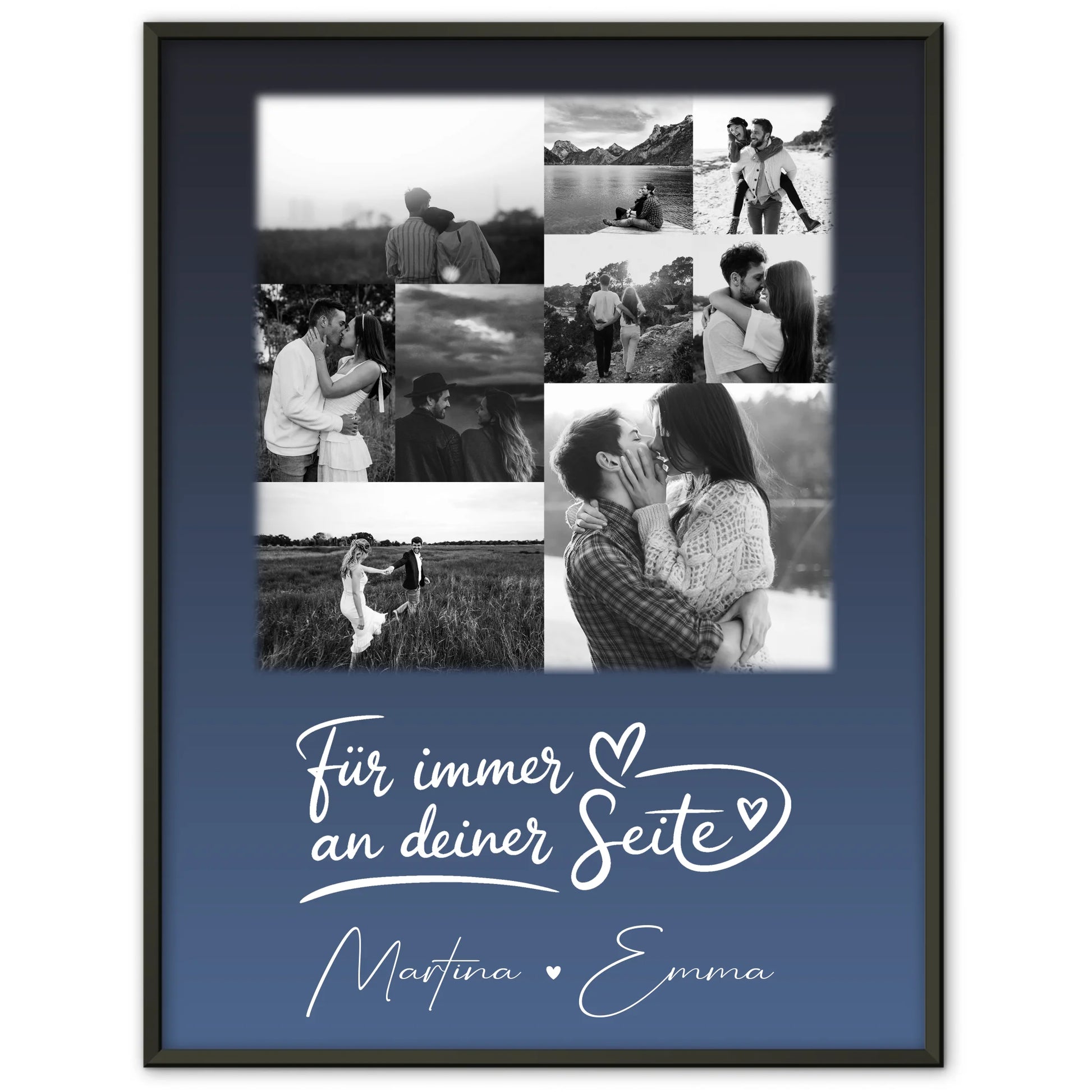 Auf dem Design prangt der gefühlvolle Spruch Für Immer An Deiner Seite. Diese Worte, kombiniert mit euren persönlichen Fotos und Namen, schaffen ein emotionales Kunstwerk, das eure Liebe für die Ewigkeit festhält und jeden Tag aufs Neue Freude bereitet. Es ist die perfekte Dekoration für euer gemeinsames Zuhause.