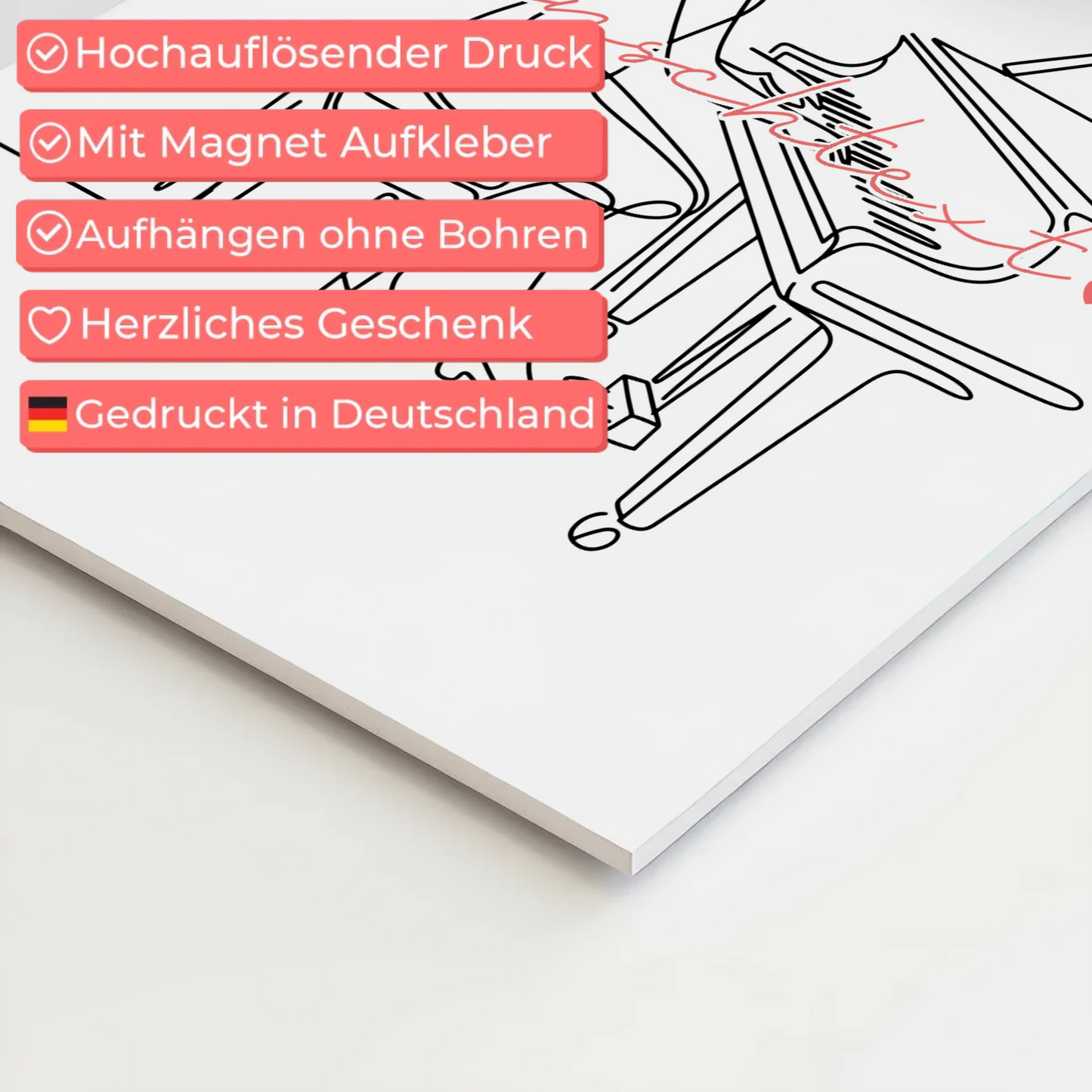 Entdecke das perfekte Geschenk für alle Klavierliebhaber mit unserem personalisierten Lineart Fotoboard Magnet Wandbild Klavier Geschenk Tochter & Schwester. Dieses einzigartige Wandbild vereint kunstvolles Design mit deiner persönlichen Note und ist ideal für jeden Anlass. Du kannst den Wunschtext, den Namen deiner Liebsten sowie ein individuelles Hintergrundbild ganz nach deinen Vorstellungen gestalten. Das hochwertige Lineart Fotoboard Magnet Wandbild zeigt ein elegantes Klaviermotiv, das sowohl Pianisten als auch Pianistinnen begeistert. Ob für eine Tochter, Schwester oder eine andere besondere Person – dieses Geschenk ist vielseitig einsetzbar und bringt Freude in jedes Zuhause. Perfekt geeignet für alle, die Musik, Piano, Klavier oder das Spielen am Instrument lieben. Überrasche deine Liebsten mit einem einzigartigen Klavier-Geschenk, das ihre Leidenschaft widerspiegelt und immer wieder bewundert werden kann. Mit diesem personalisierten Produkt machst du jedem Anlass eine besondere Freude – egal ob Geburtstag, Jubiläum oder einfach nur so.
