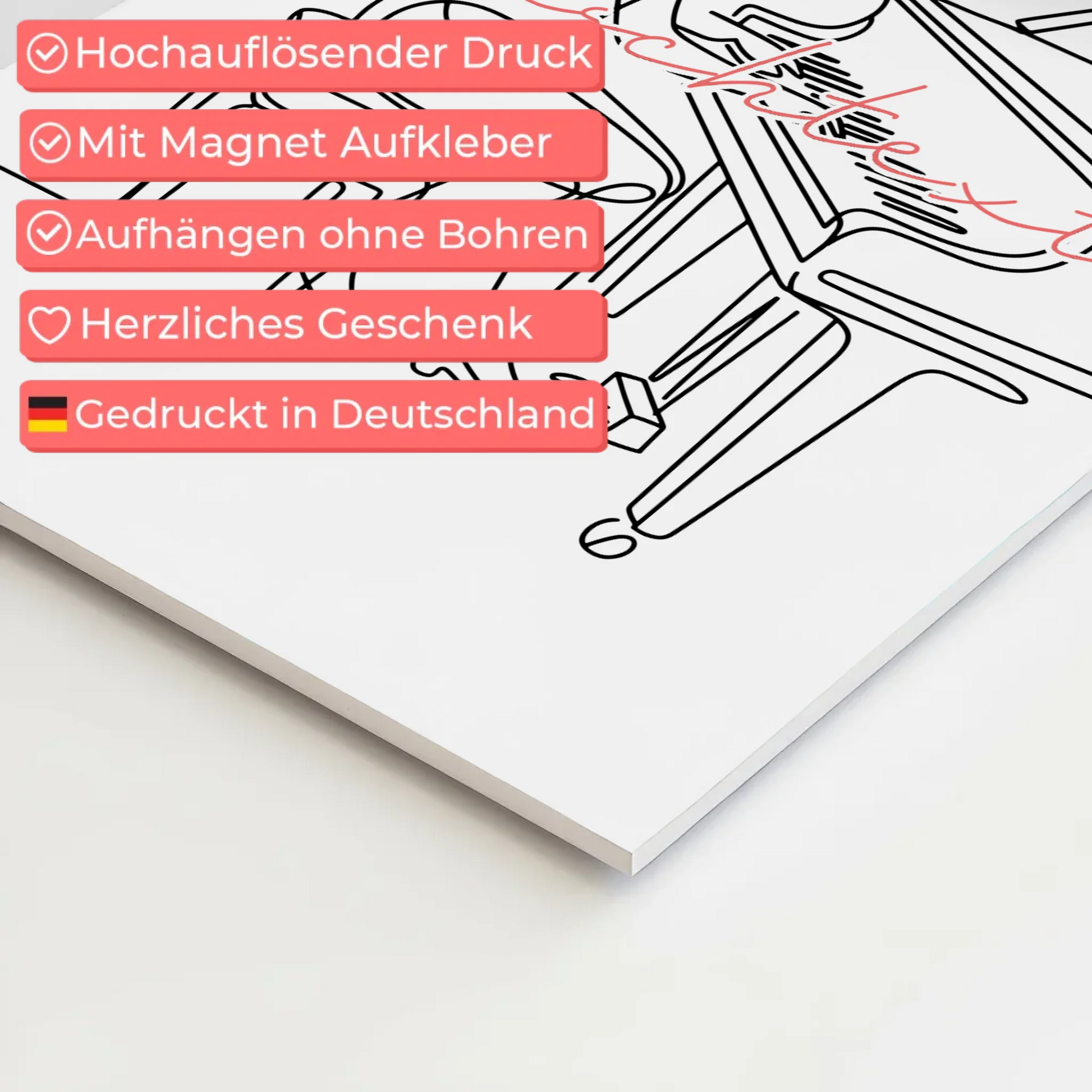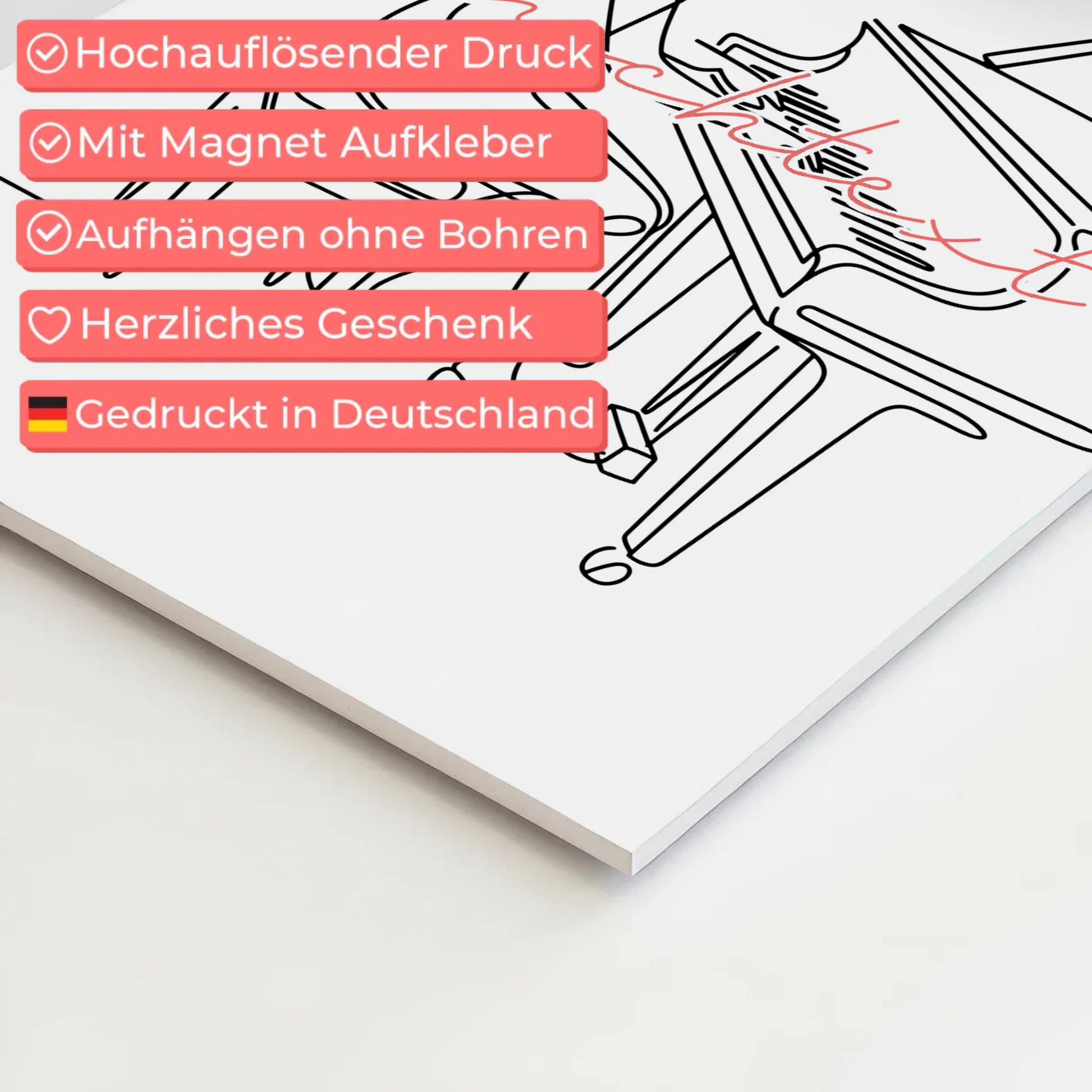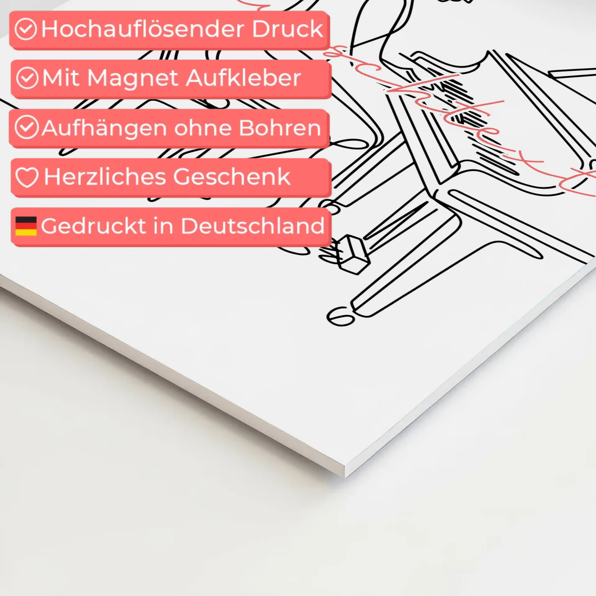Personalisierte Lineart Fotoboard Magnet Wandbild Klavier Geschenk Tochter & Schwester