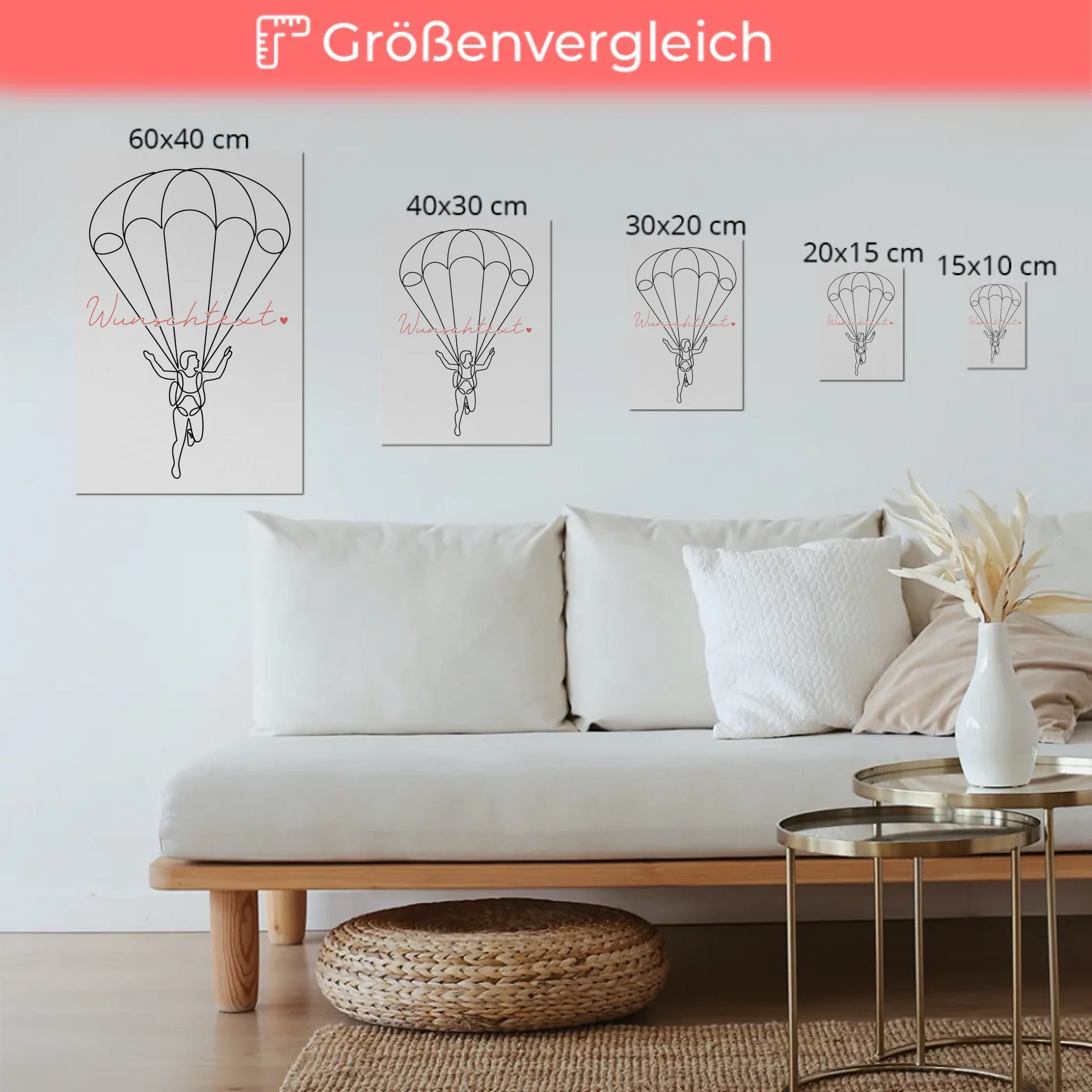 Personalisierte Geschenkidee: Lineart Fotoboard Magnetisch Personalisiert Fallschirmspringen Geschenk Tochter & Schwester