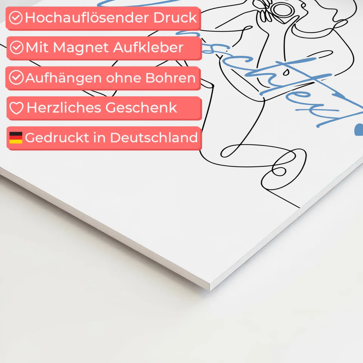 Du suchst nach einem einzigartigen und persönlichen Geschenk für einen besonderen Menschen? Das Lineart Fotoboard Magnetisch Personalisiert ist die perfekte Wahl, um deine Wertschätzung auf kreative Weise zu zeigen. Dieses individuell gestaltbare Fotoboard eignet sich hervorragend als Geschenk für Sohn & Bruder oder für jeden Fotografen, Fotografin, der seine Leidenschaft und Erinnerungen stilvoll präsentieren möchte. Mit diesem personalisierten Fotoboard kannst du Wunschtext, Name und Hintergrundbild ganz nach deinen Vorstellungen anpassen – so entsteht ein einzigartiges Andenken, das garantiert begeistert. Besonders bei Abschiedssituationen ist dieses Geschenk eine emotionale Geste, die lange in Erinnerung bleibt. Das magnetische Design macht es einfach, Fotos und Erinnerungsstücke zu befestigen und immer wieder neu zu gestalten. Ob du es für einen Fotografen, eine Fotografin oder jemanden aus deinem Freundeskreis suchst – dieses personalisierte Produkt verbindet Kreativität mit persönlicher Note. Überrasche deine Liebsten mit einem individuellen Lineart Fotoboard Magnetisch Personalisiert und schaffe ein unvergessliches Andenken an gemeinsame Momente.