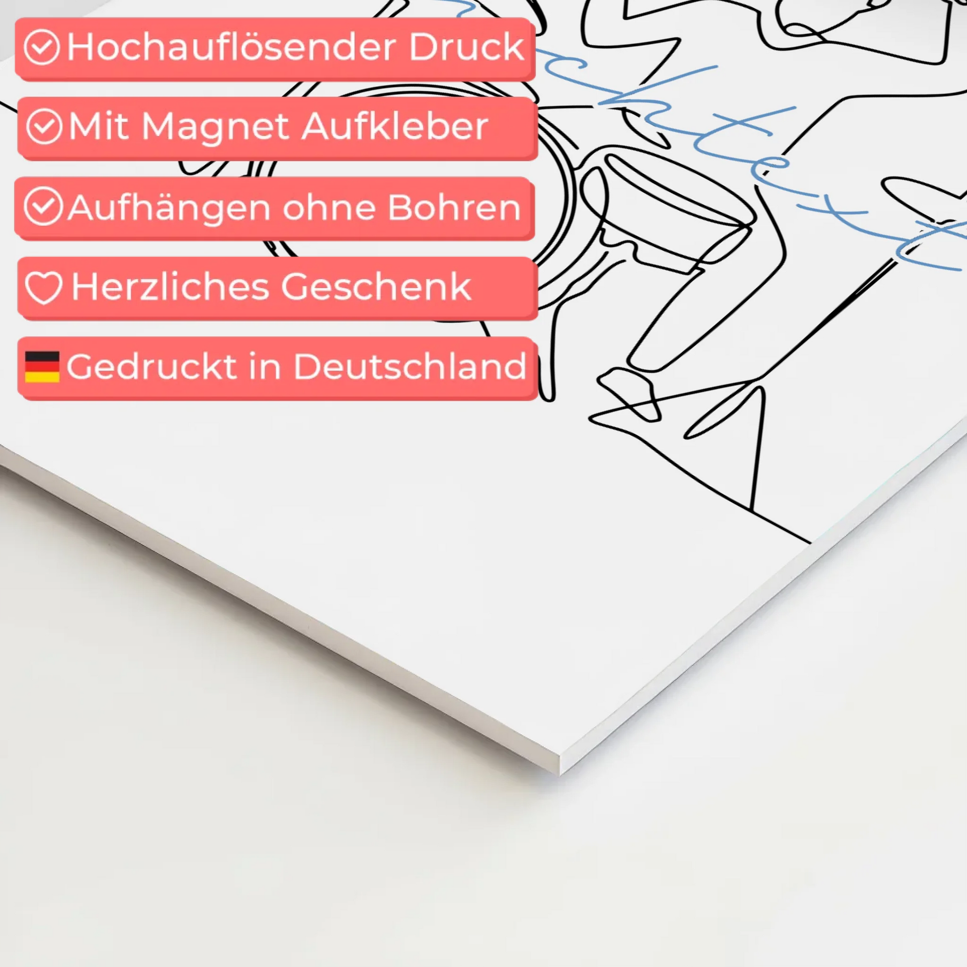Personalisierte Geschenkidee: Lineart Fotoboard Magnetisch Personalisiert Schlagzeug Geschenk Sohn & Bruder