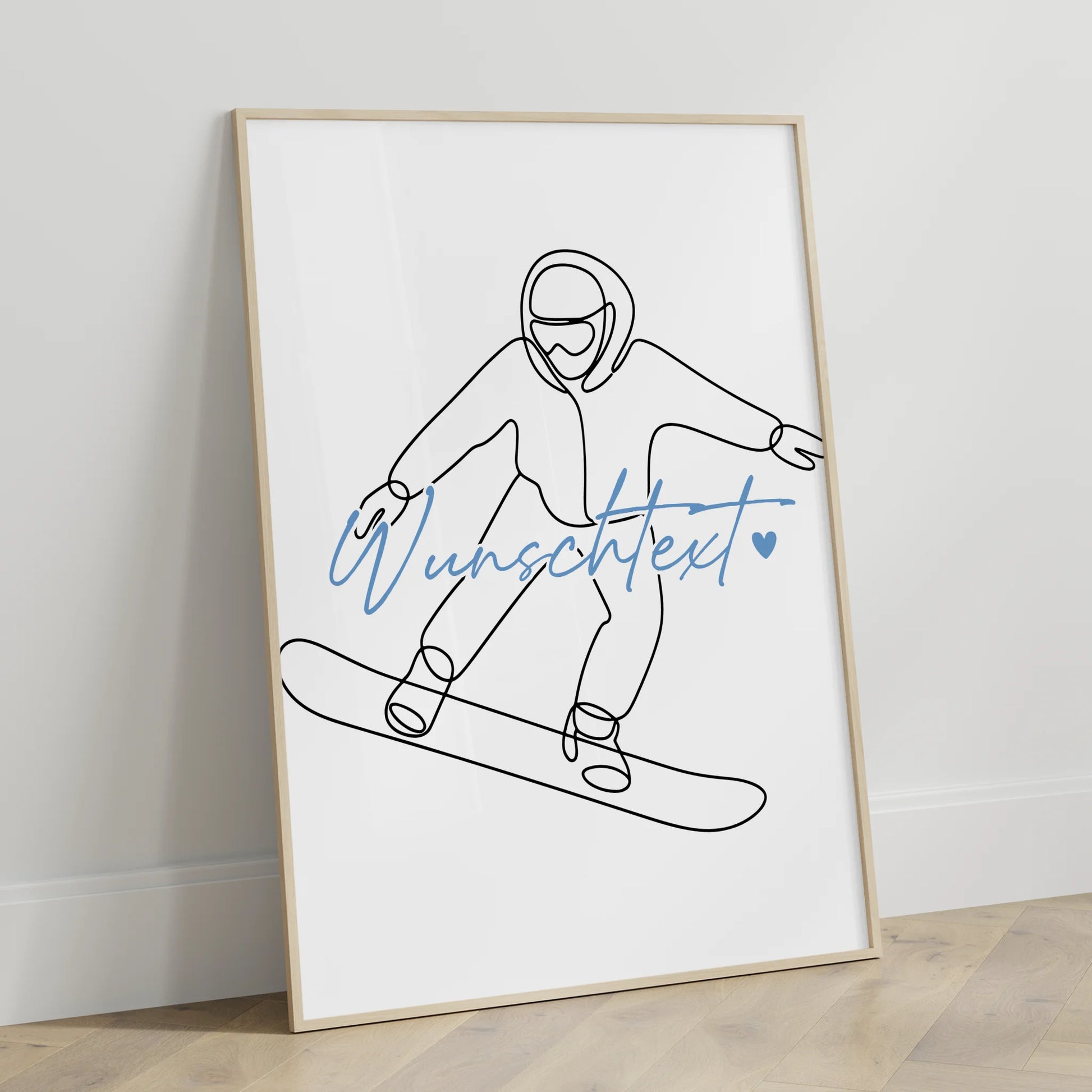 Entdecke das digitale Lineart Poster Personalisiert zum selber ausdrucken Snowboarden Geschenk Sohn Bruder