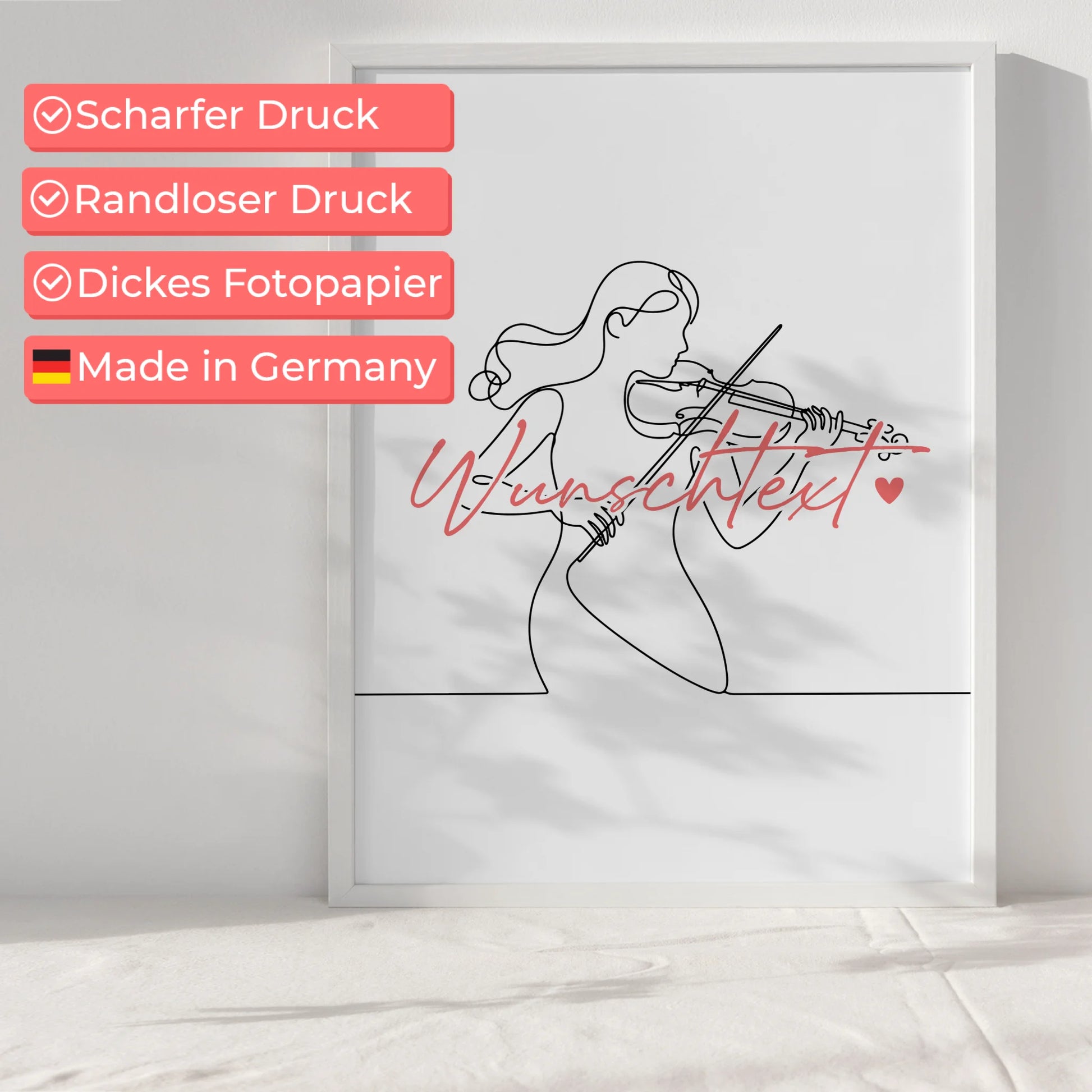 Lineart Poster Personalisiert Violine Geschenk Tochter & Schwester für Violinist Violinistin violin
