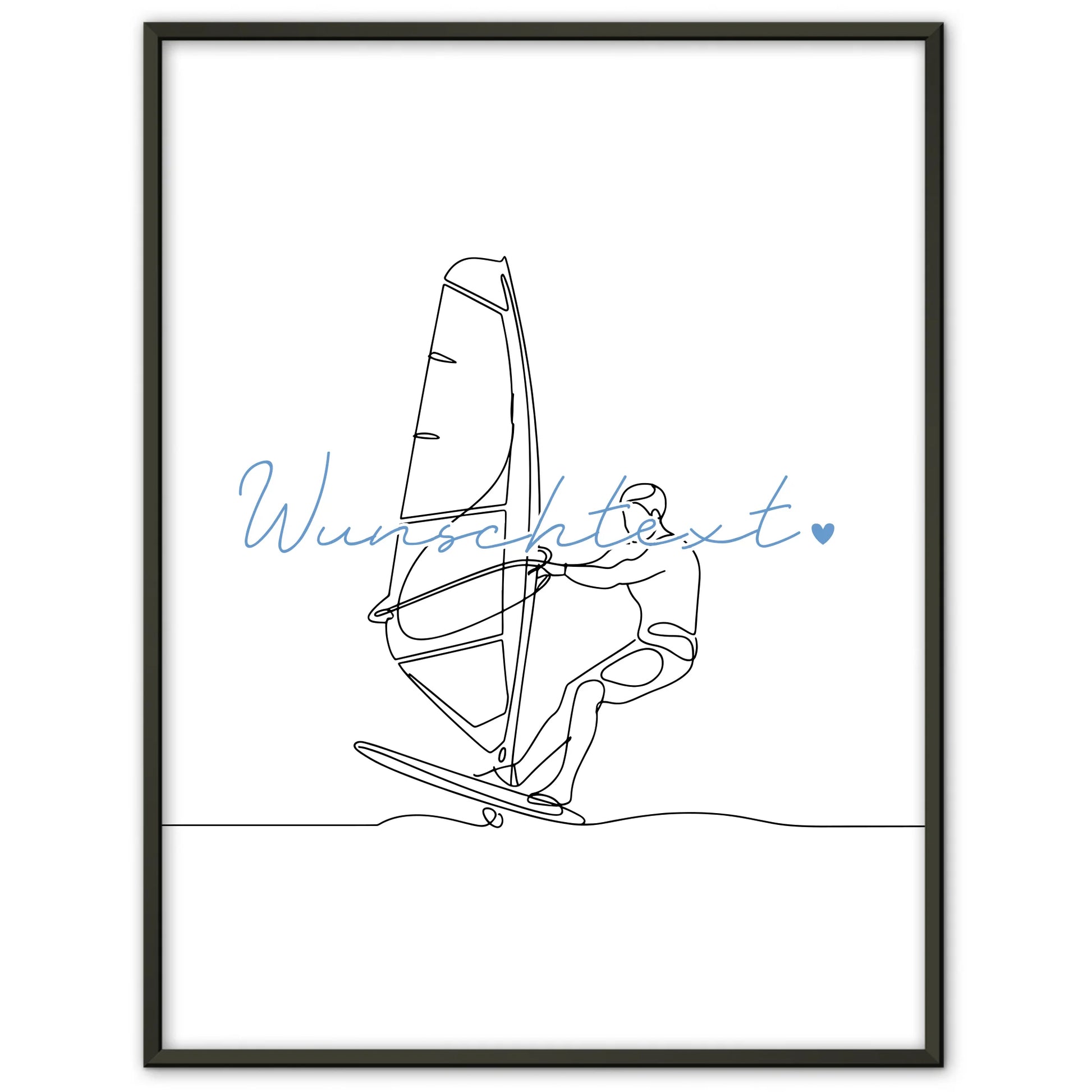 Lineart Poster Personalisiert Windsurfen Geschenk Sohn & Bruder für Windsurfer Windsurferin Windsurfing