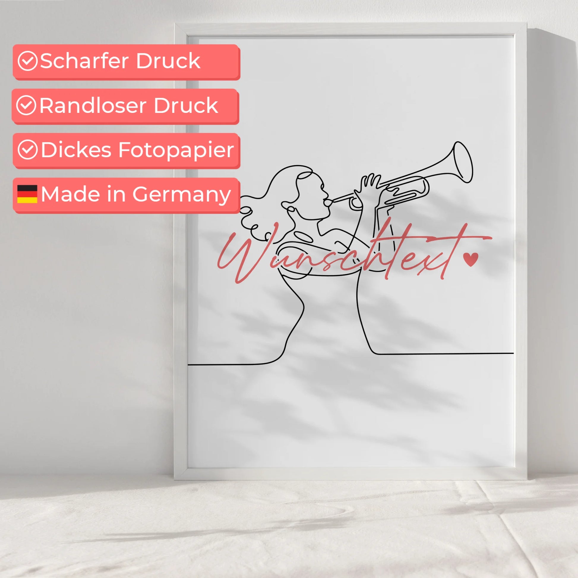 Digitaler Download Poster zum Ausdrucken Lineart Poster Trompete Geschenk Tochter Schwester für Trompeter Trompeterin trumpet